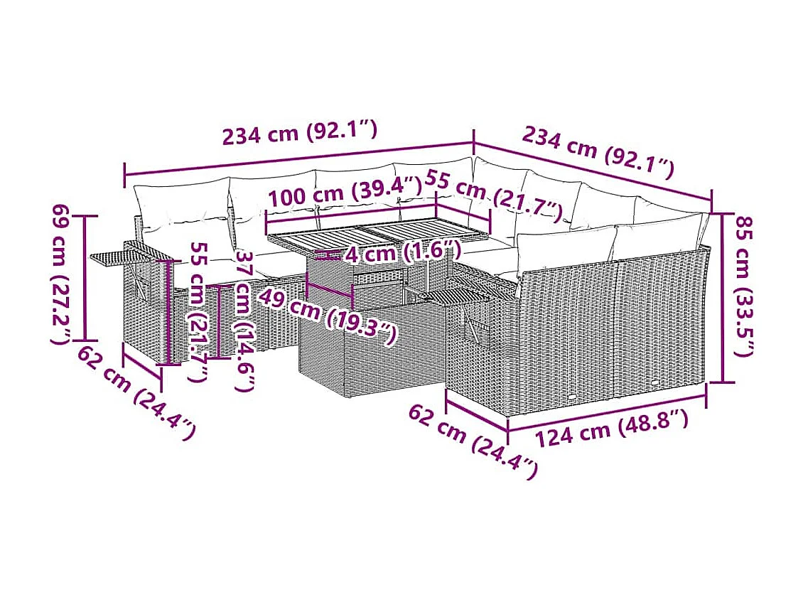 9-tlg. Garten-Sofagarnitur mit Kissen Schwarz Poly Rattan