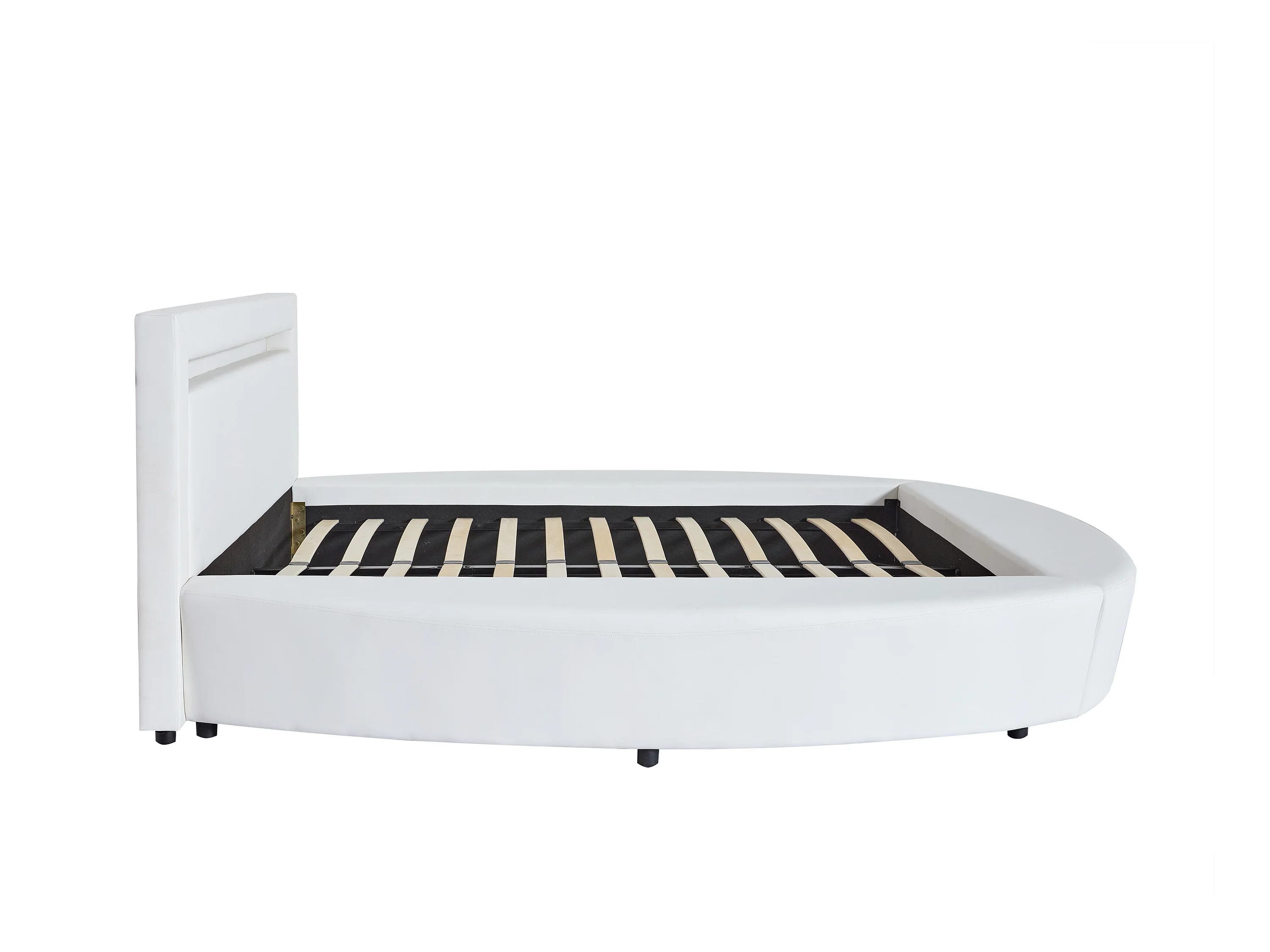 Bett mit LEDs - 180 x 200 cm - Kunstleder - Weiß + Matratze - ABULIS III