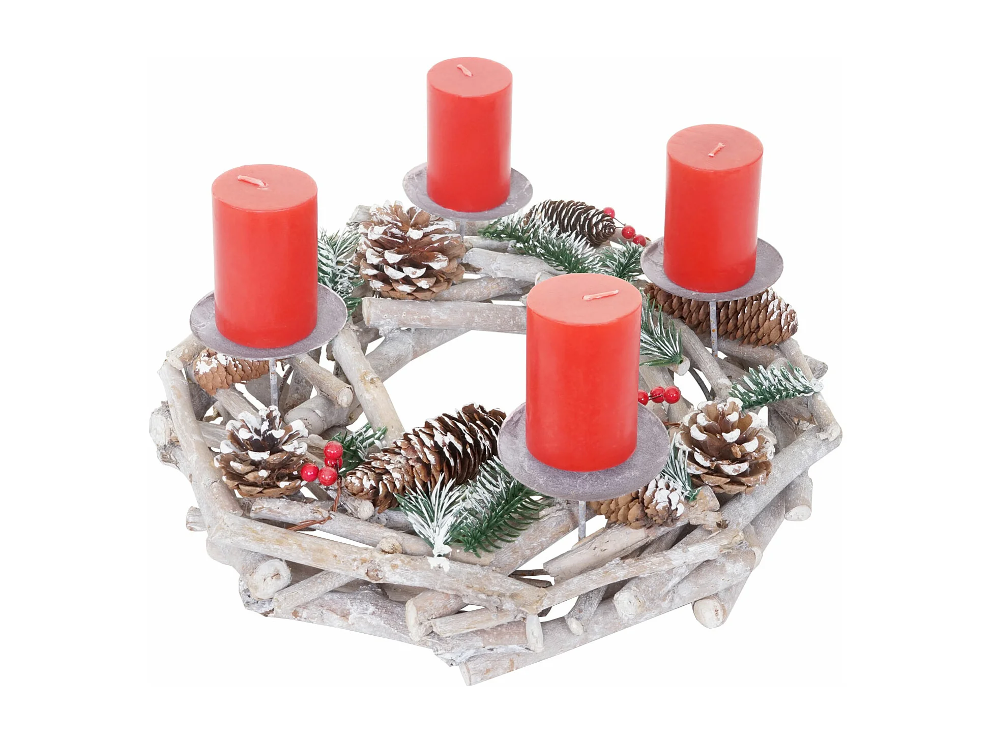 Adventskranz MCW-H50 Holz mit Kerzen rot, Inkl. 4x Kerzen rot