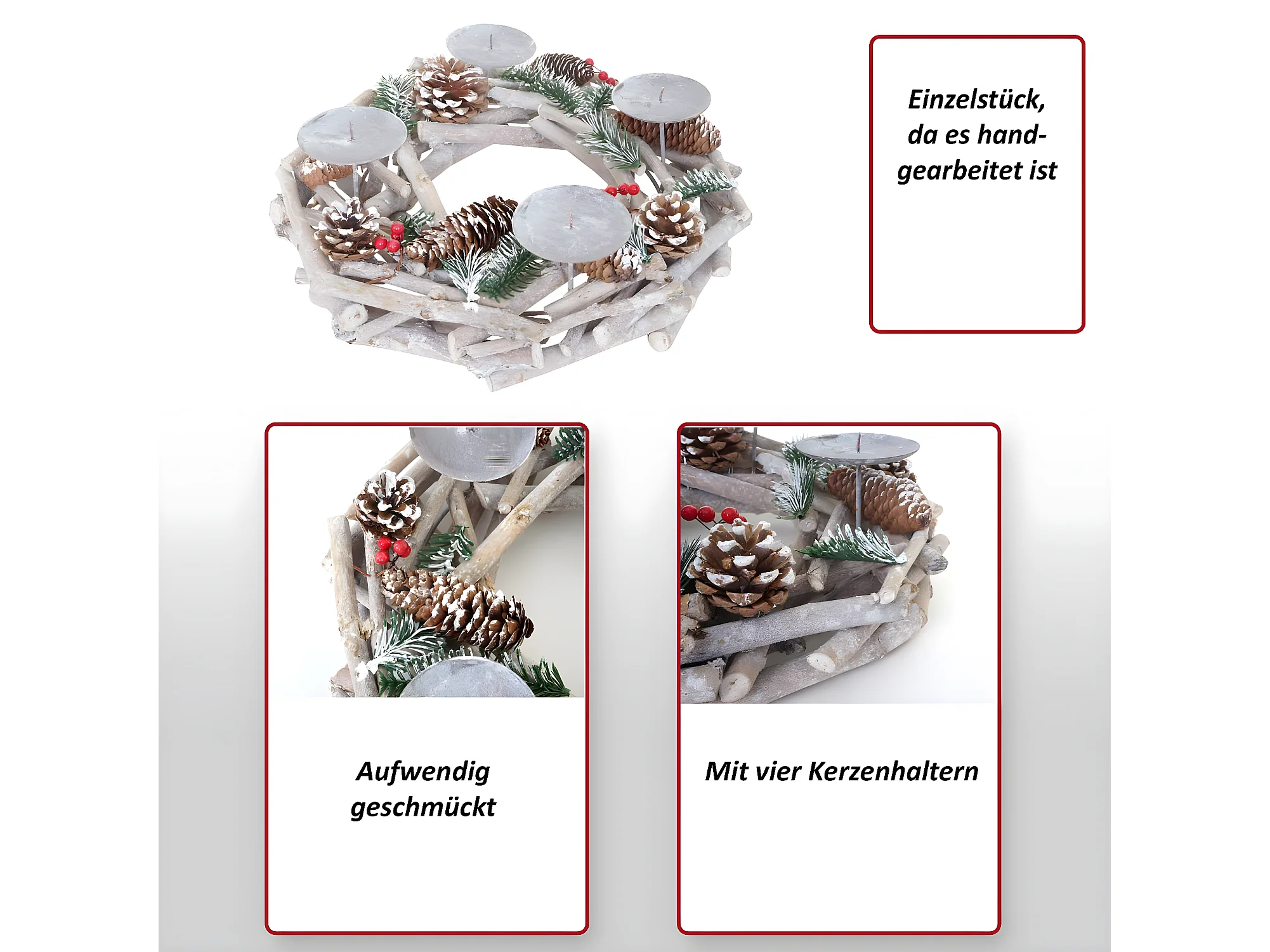 Adventskranz MCW-H50 Holz ohne Kerzen, Ohne Kerzen