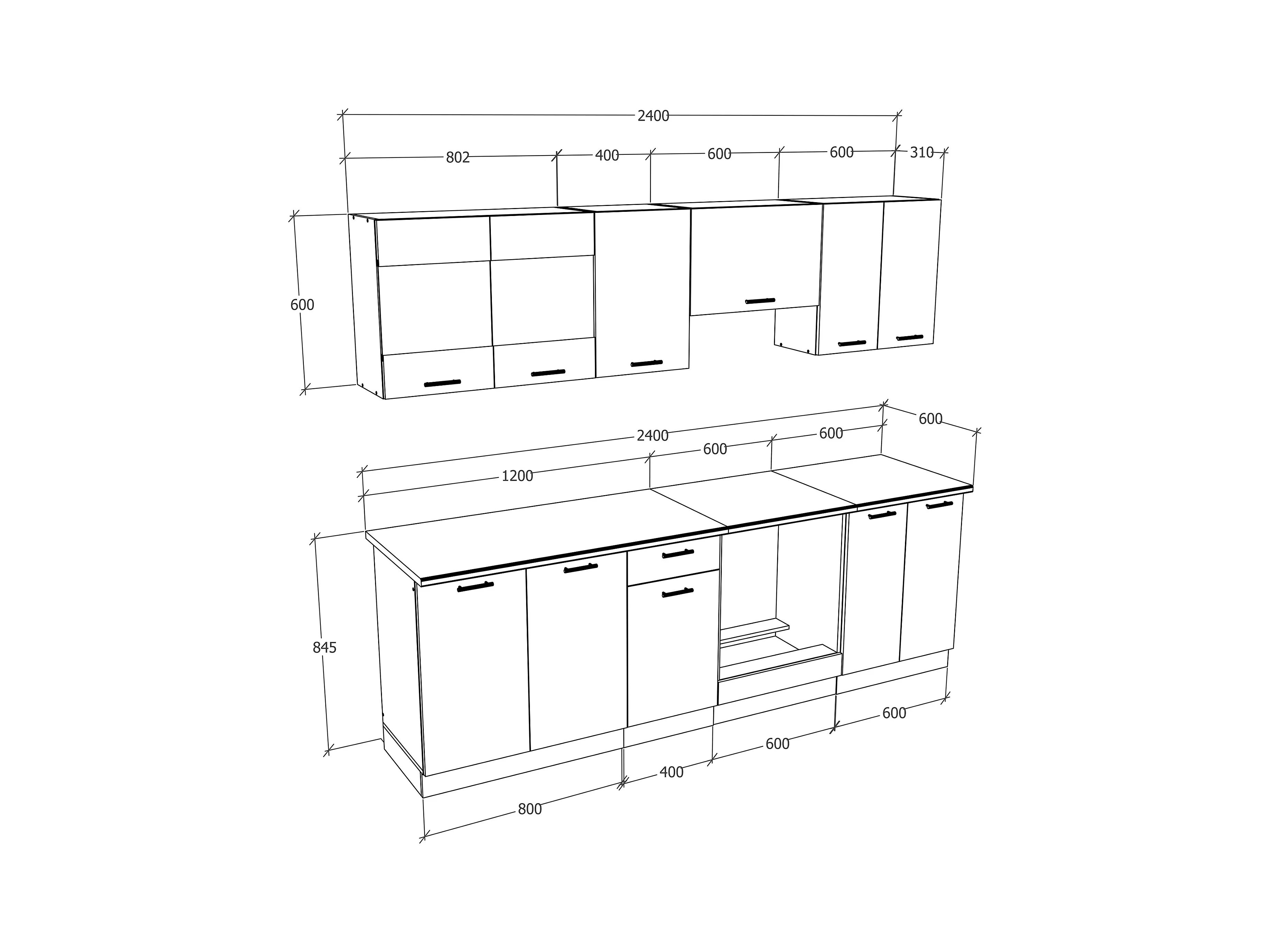 8-tlg Einbauküche Küchenzeile 240 cm Esilo