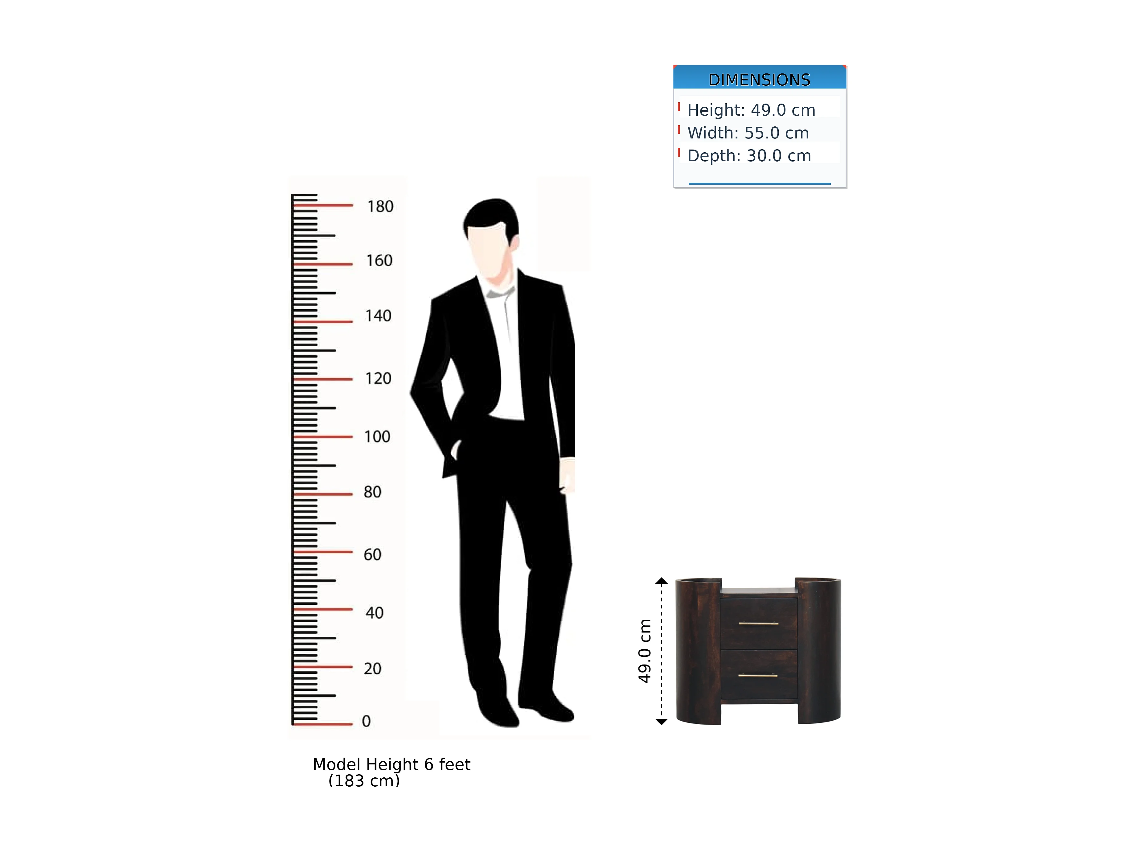 Artisan Furniture Nachttisch Valencia mit zwei Schubladen aus massivem Mangoholz, T-Griffen, dunkelbraun