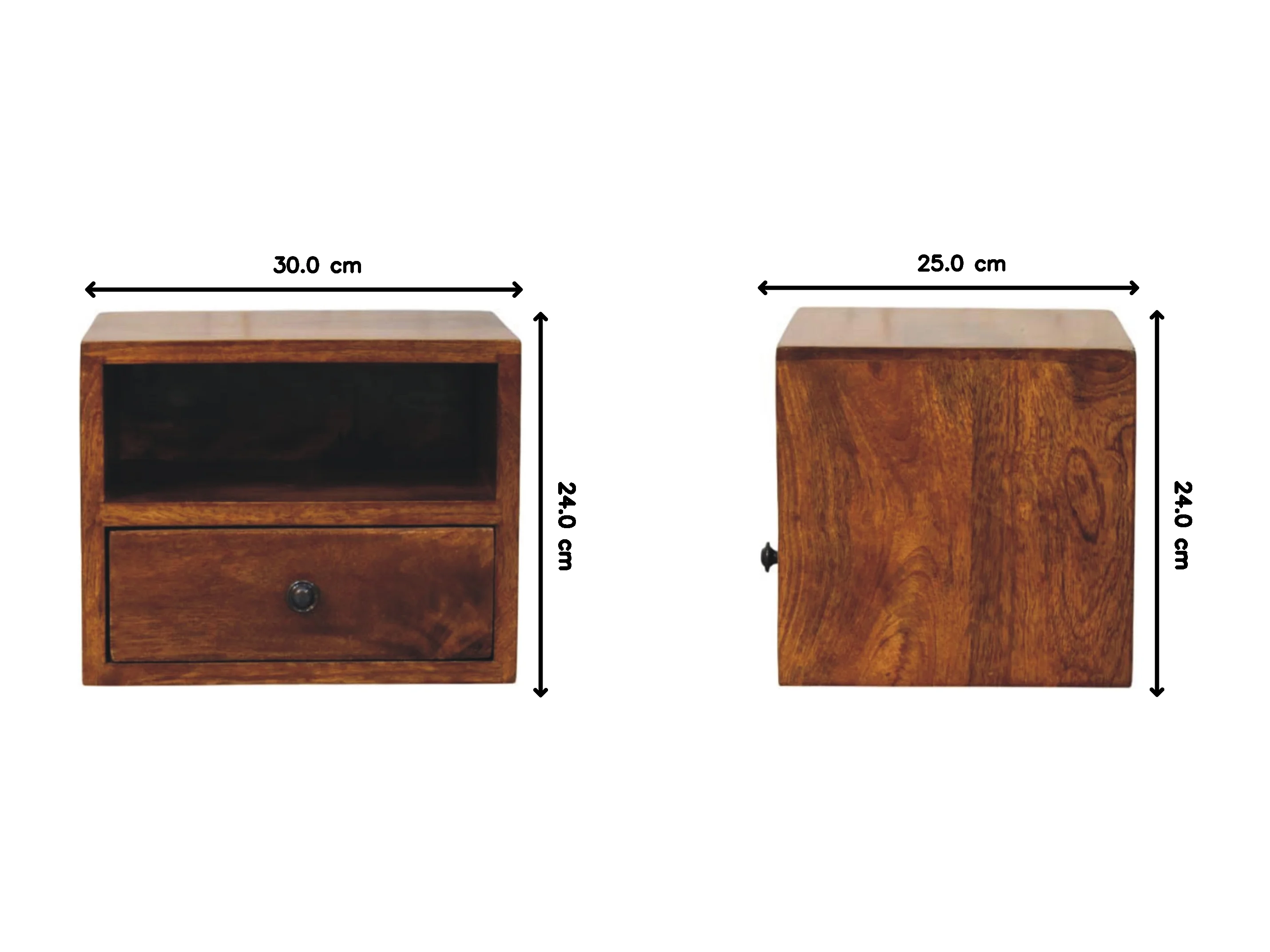 Artisan Furniture Solis Wandmontierter Nachttisch mit 1 Schublade aus massivem Kastanienholz