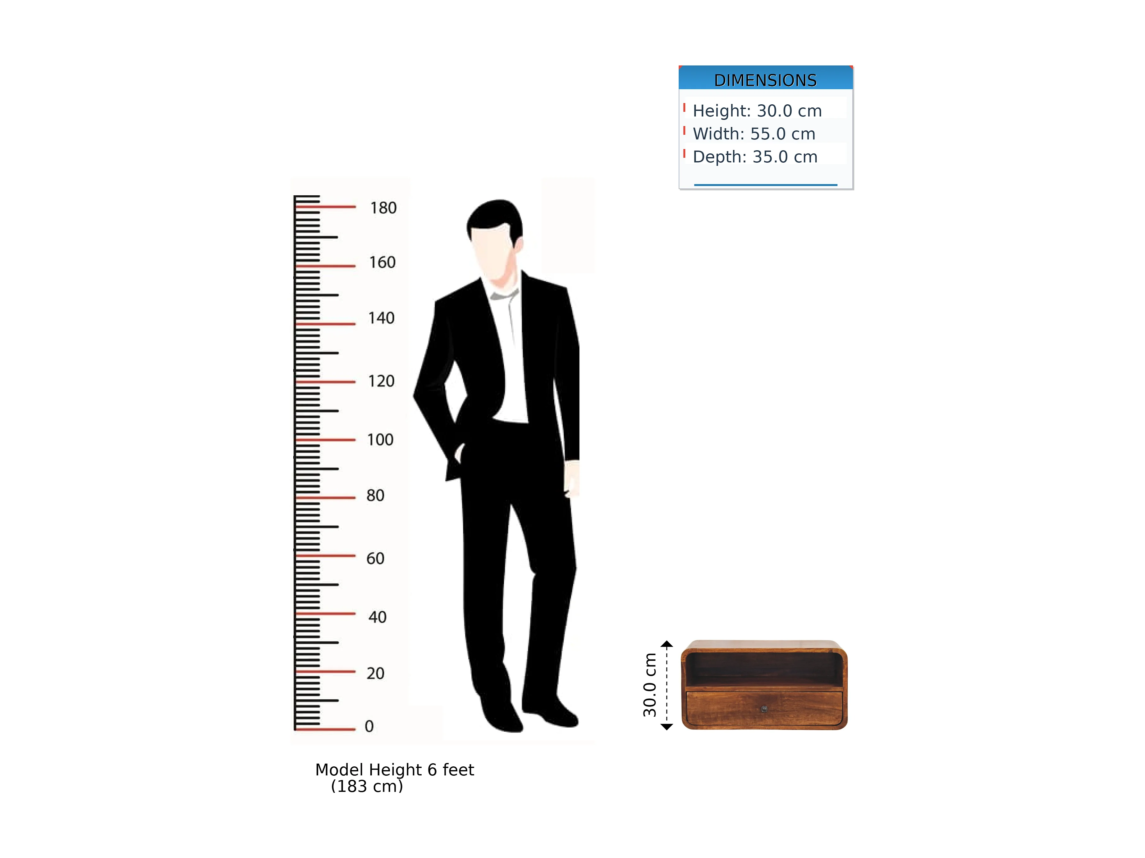 Artisan Furniture Wand-Nachttisch Unvorun aus massivem Mangoholz in Kastanienoptik, 1 Schublade, 1 offene Nische, braun