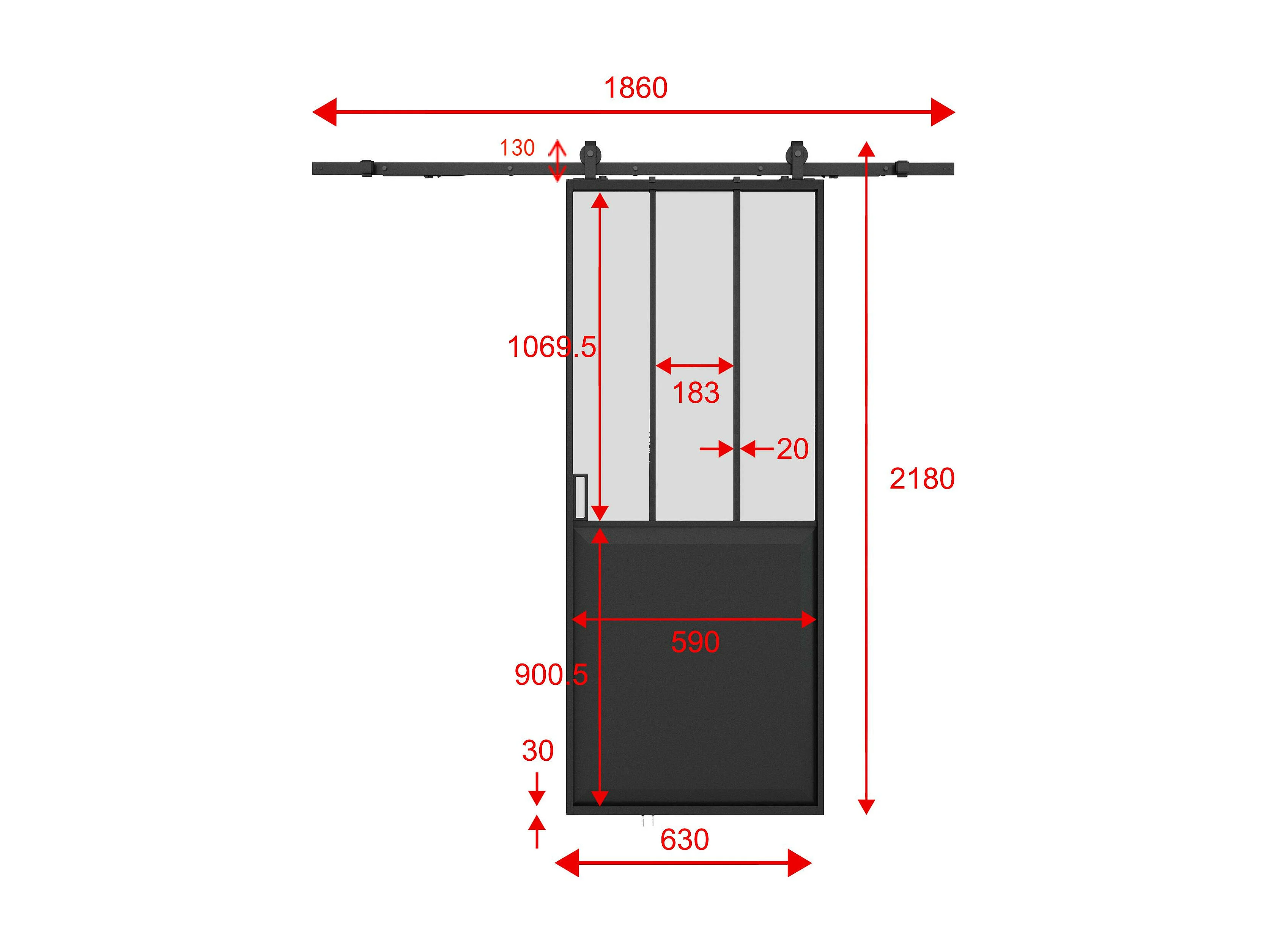 Atelier-Schiebetür mit Laufschienensystem - Schwarz & Sicherheitsglas mattiert - 205 cm x 63 cm - ARTISTO II