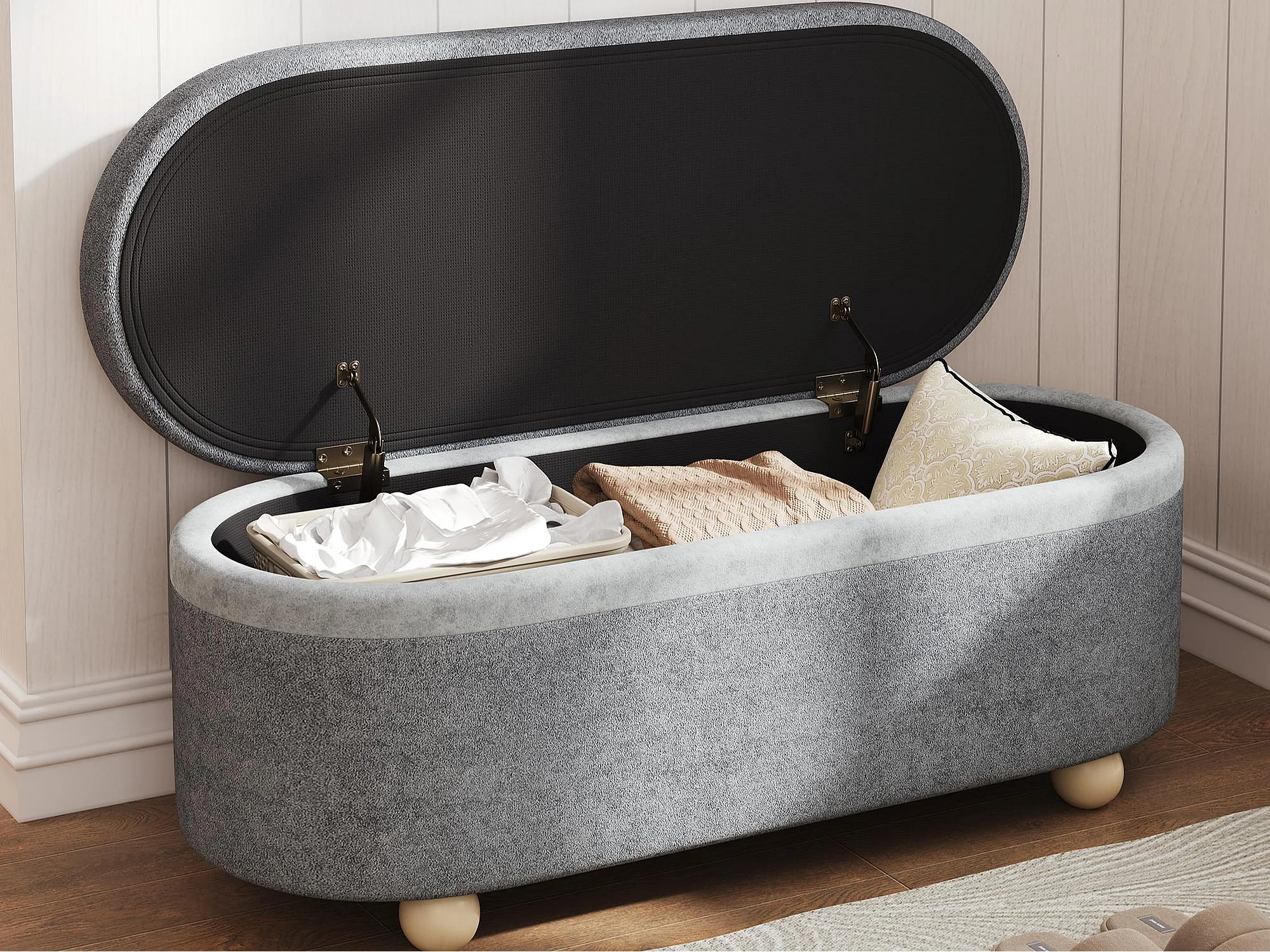 Aufbewahrungsbank 121.5x49x44.5cm - Bezug aus Wollstoff - Hockerbeine aus Holz - Grau