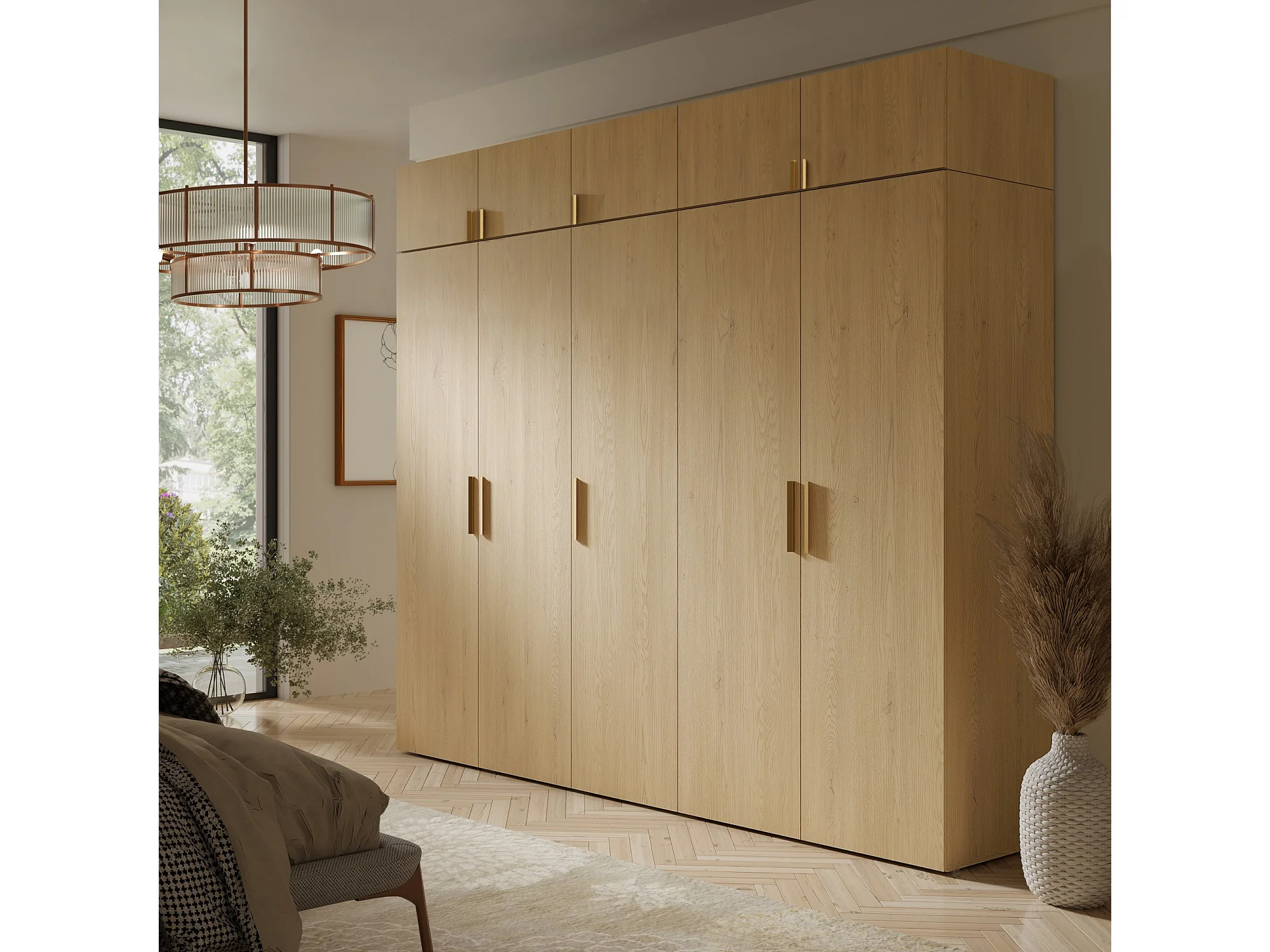 Aufsatz für Schrank Napoli 5D 250 Eiche Cremona (schwarzer oder goldener Griff)