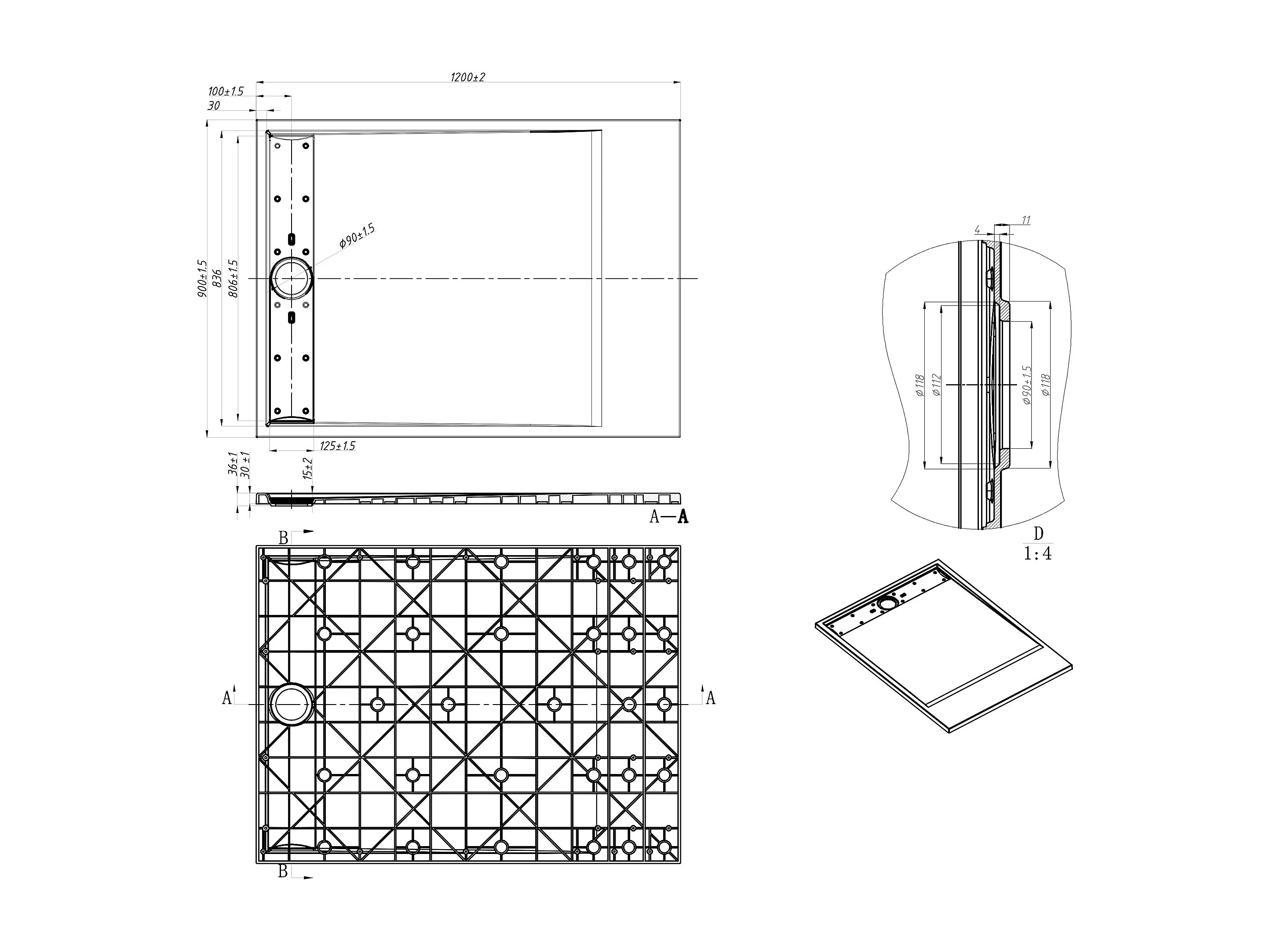 Extraflache, zuschneidbare Aufsatz- oder Einbauduschtasse - Kunstharz SMC - Schwarz - 120 x 90 cm - LYROSA