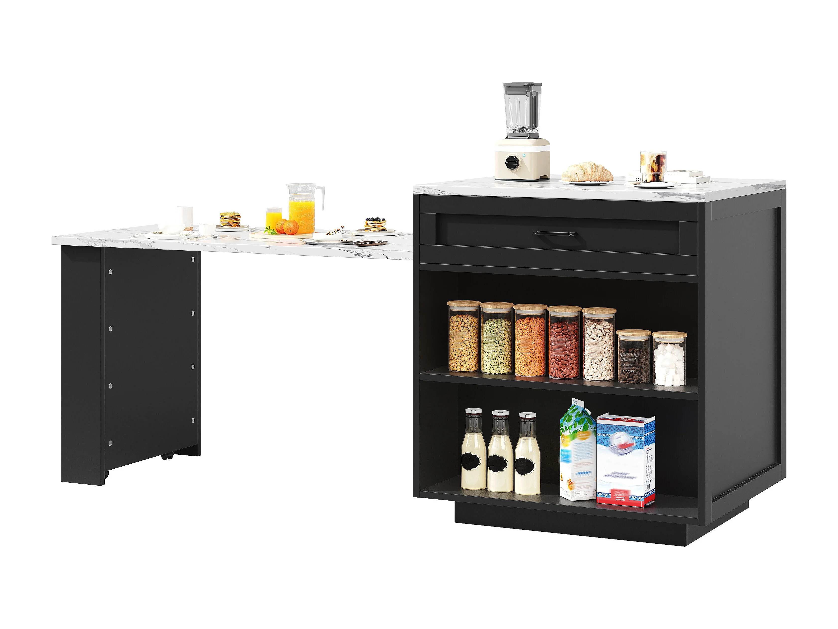 Ausziehbarer Bartisch mit Stauraum – 133–202 x 70 x 93,5 cm – mit 2 Schubladen und 2 Fächern – MDF – schwarz