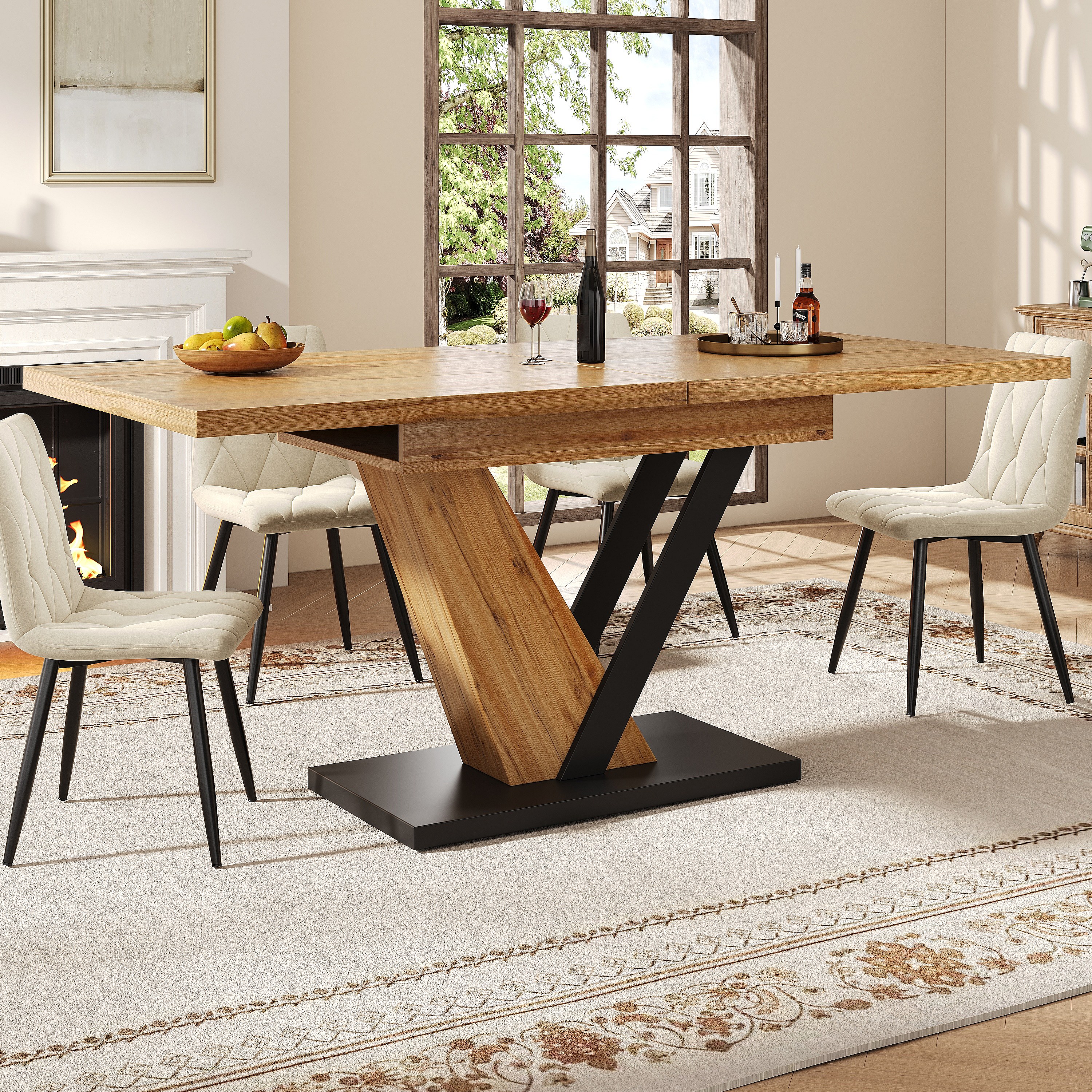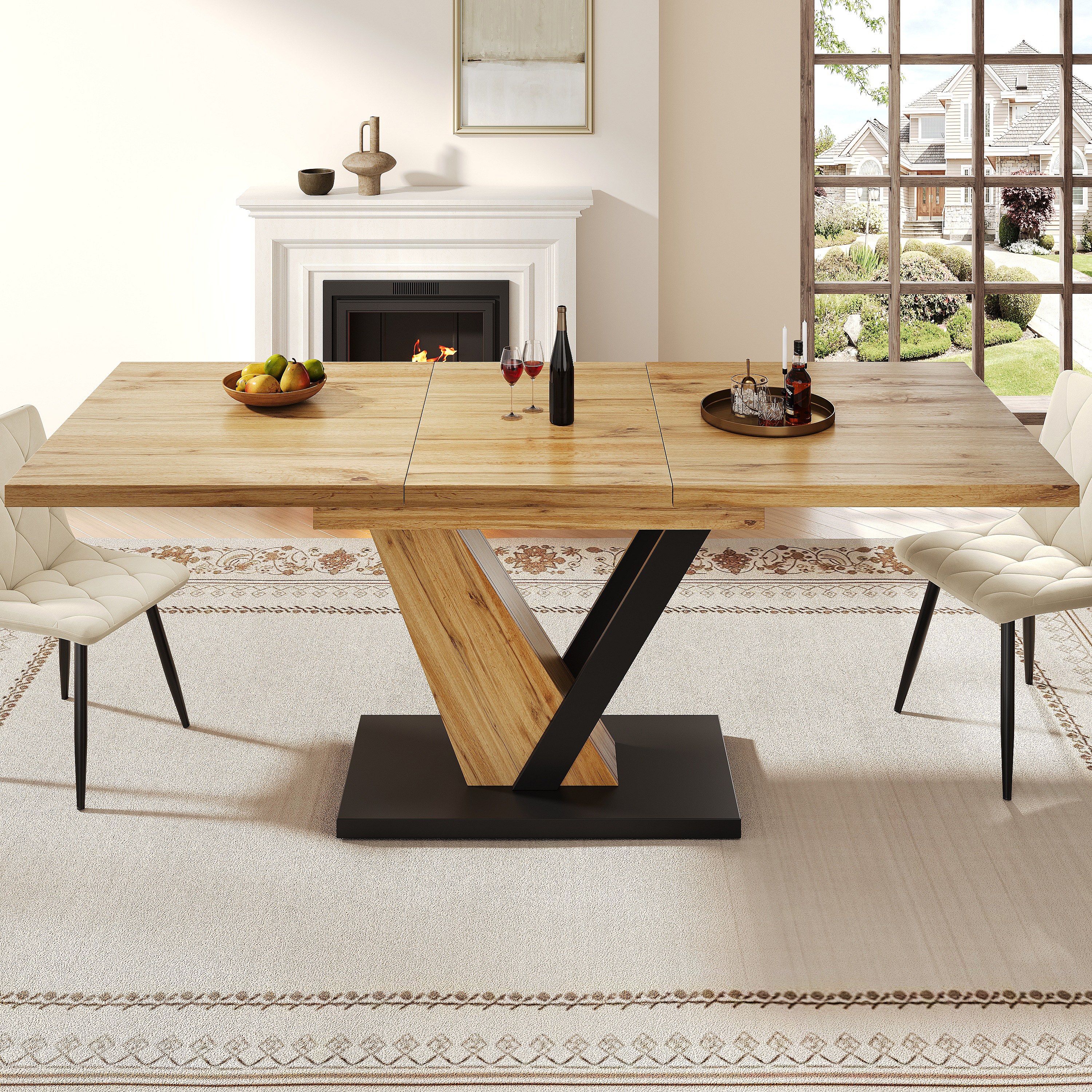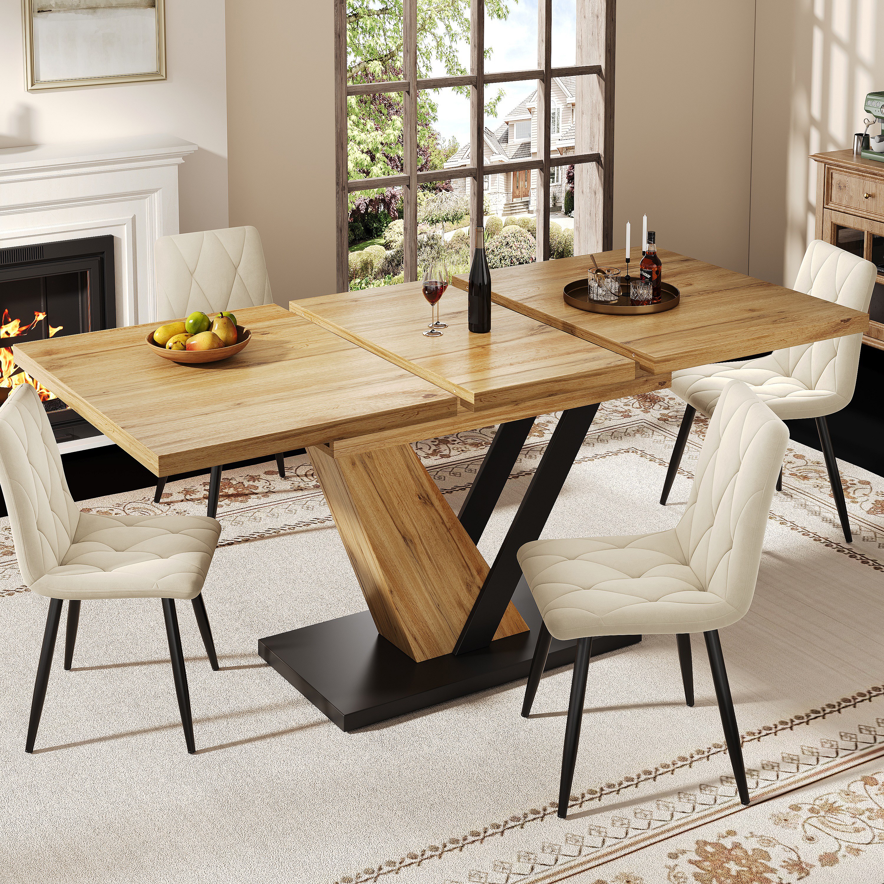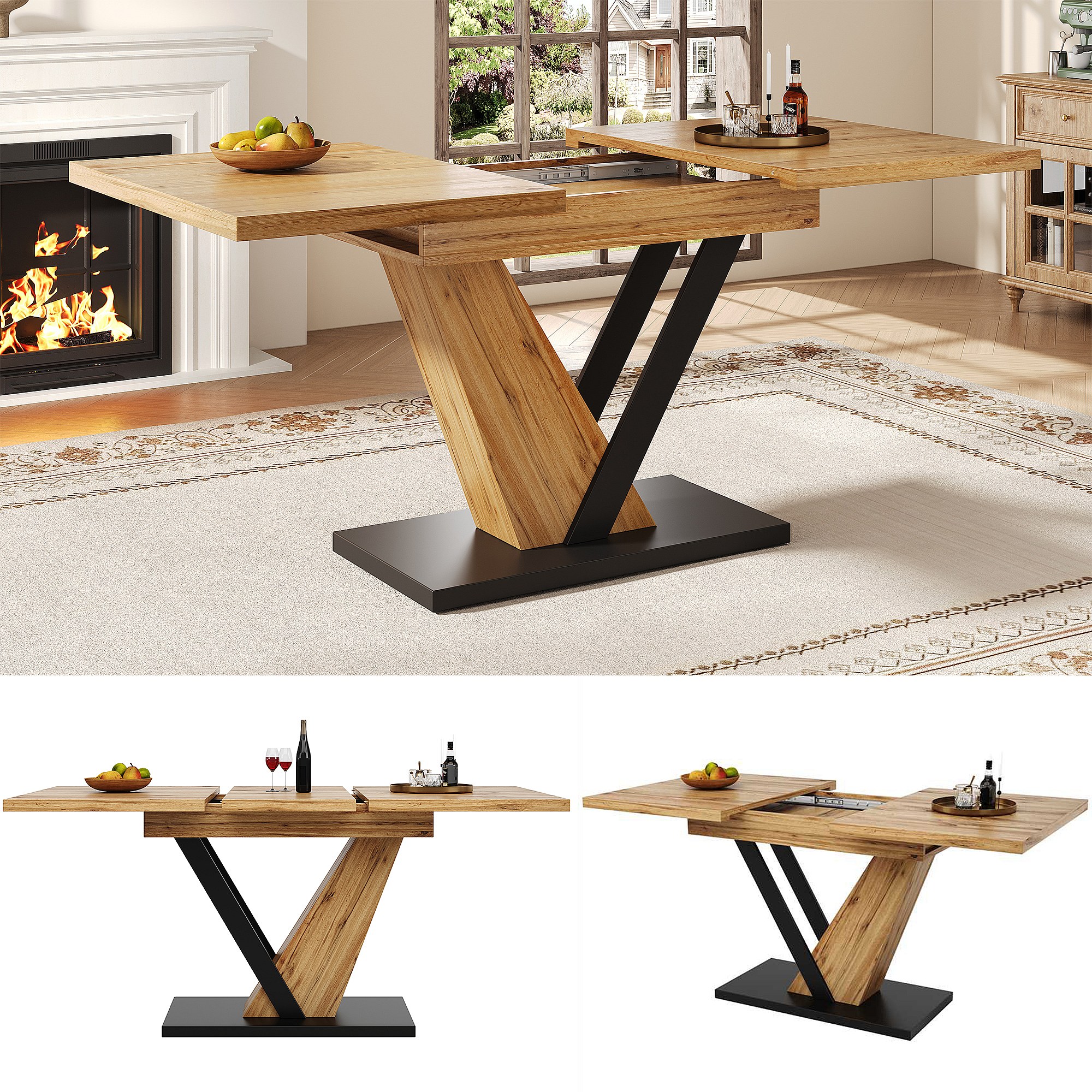 Ausziehbarer Esstisch - 120/160 x 75 x 75,5 cm - für Küche und Wohnzimmer - MDF + Metall - Natur