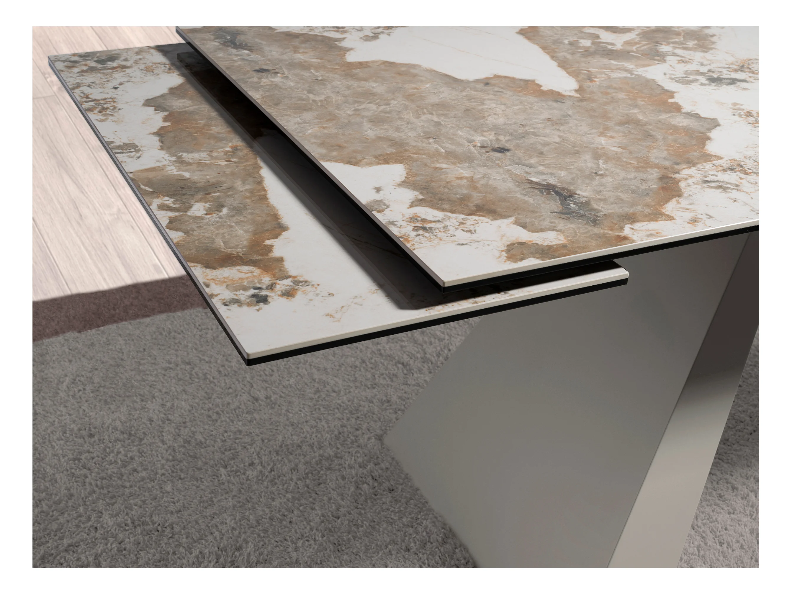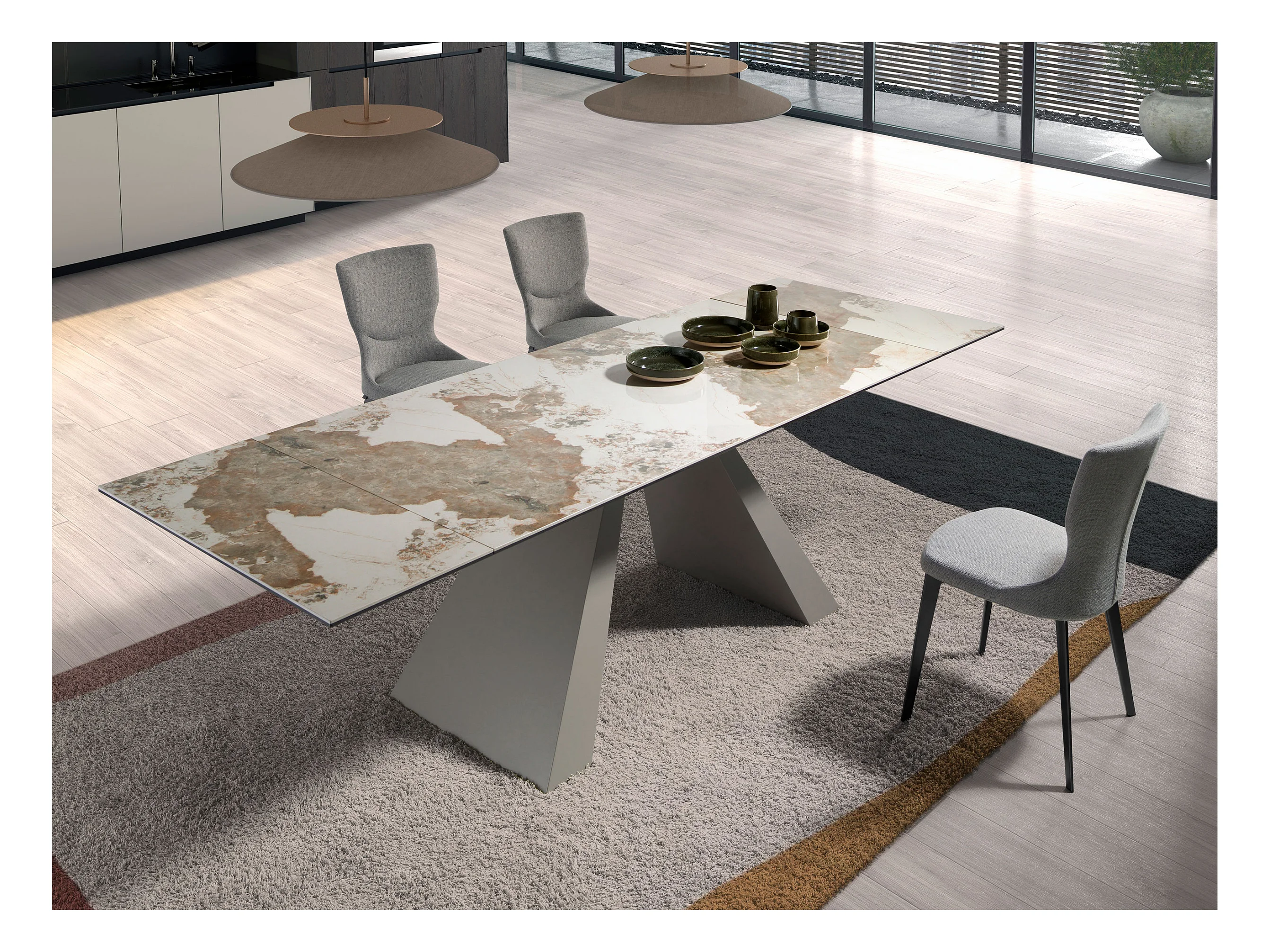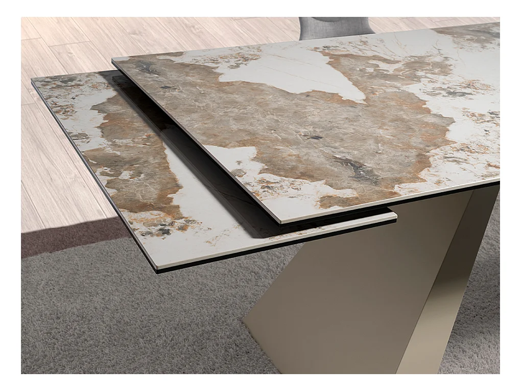 Rechteckiger ausziehbarer Esstisch aus Porzellanmarmor und taupefarbenem Stahl 1124 ANGEL CERDA