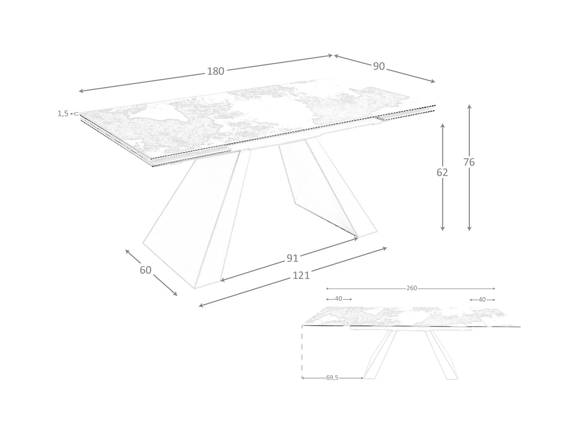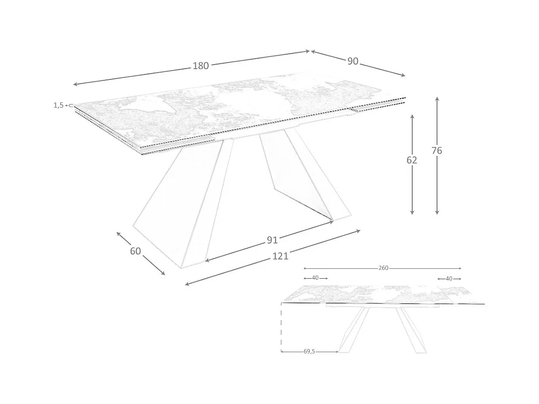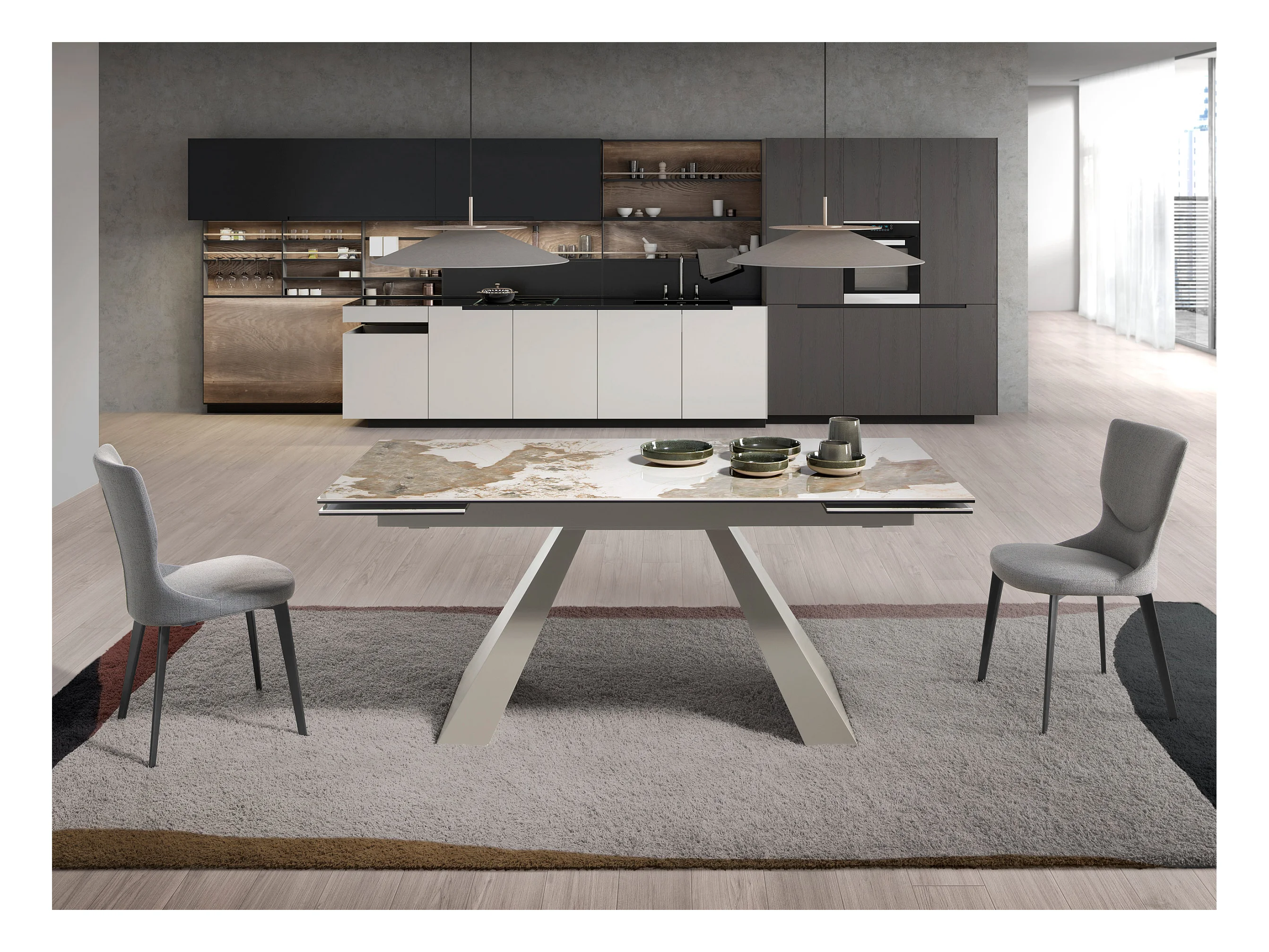 Rechteckiger ausziehbarer Esstisch aus Porzellanmarmor und taupefarbenem Stahl 1124 ANGEL CERDA