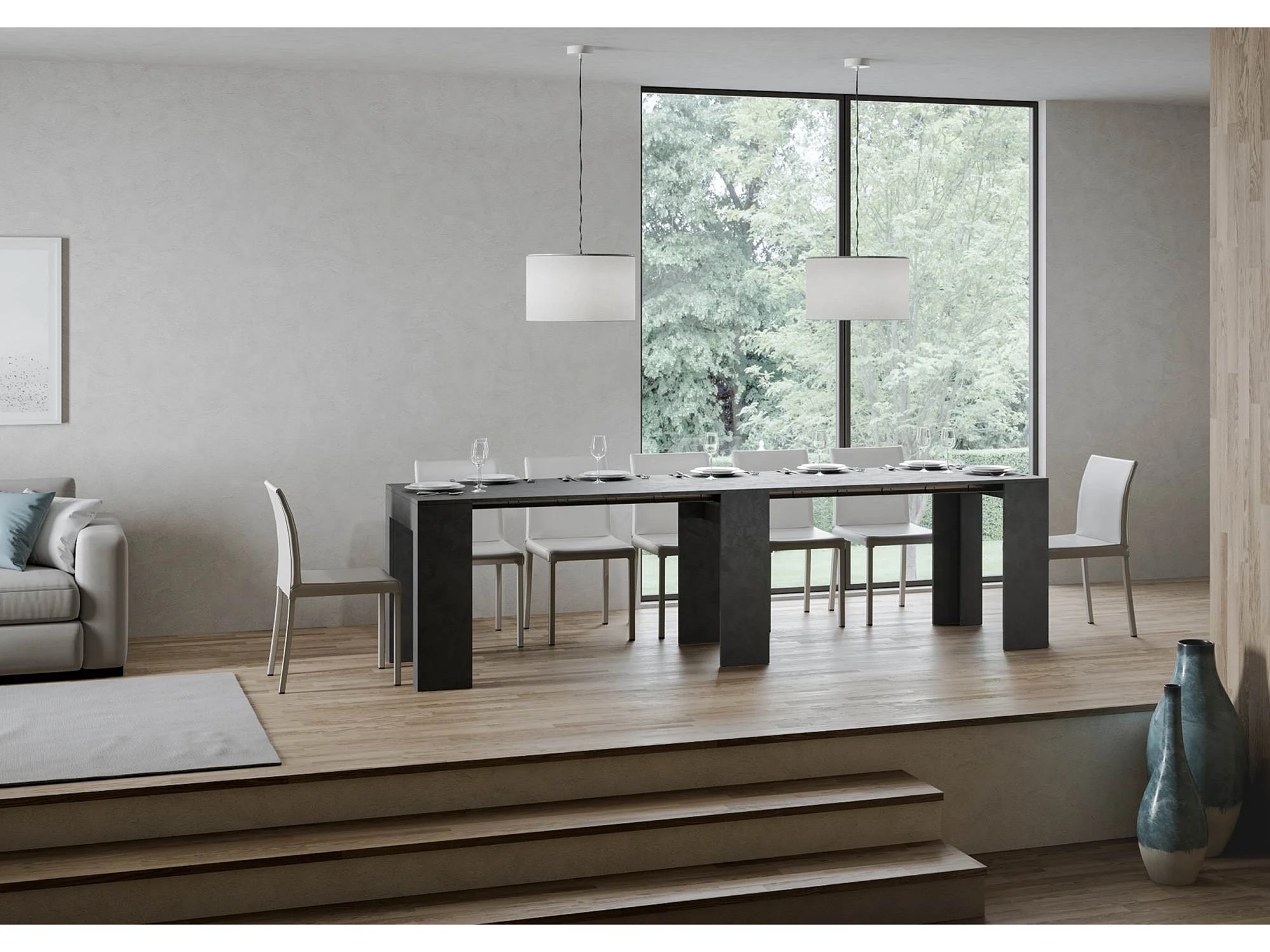 Ausziehbarer Konsolentisch 78x47/299 cm Allin Effekt anthrazit gespachtelt mit Innenverlängerungen