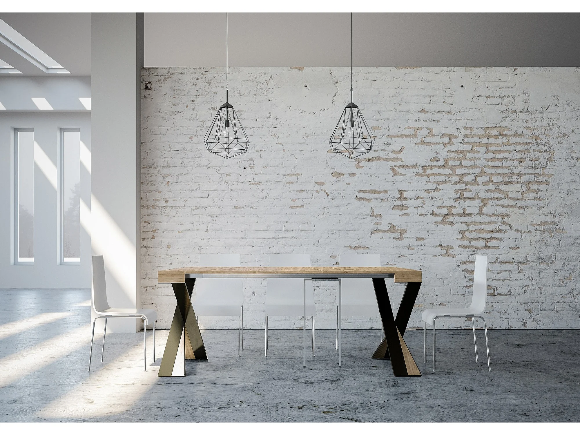 Ausziehbarer Konsolentisch 90x40/196 cm Diago Small Eiche Natur mit Eisenrahmen aus Anthrazit