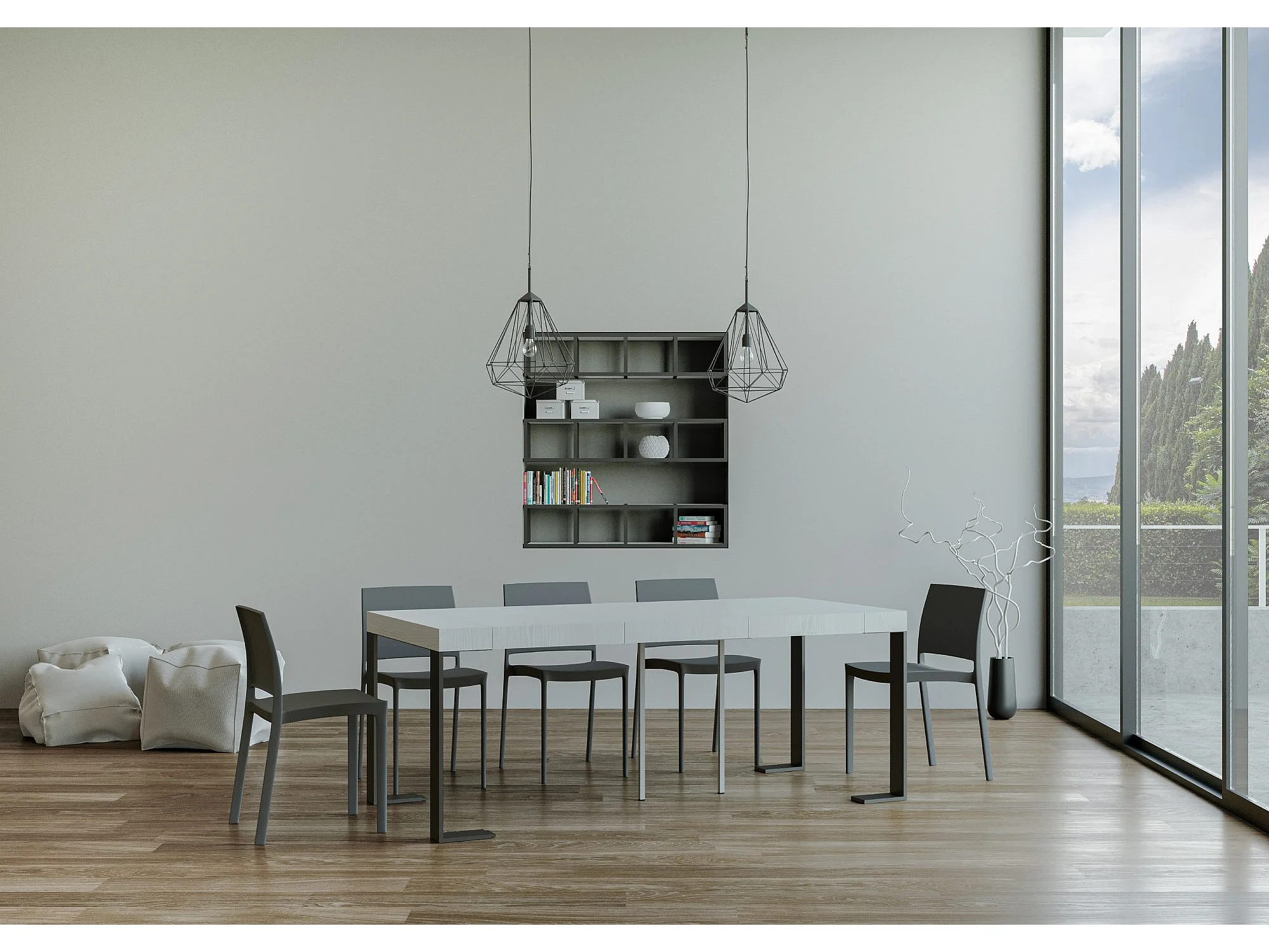 Ausziehbarer Konsolentisch 90x40/196 cm Tecno Small Premium Esche weiß mit Eisenrahmen aus Anthrazit