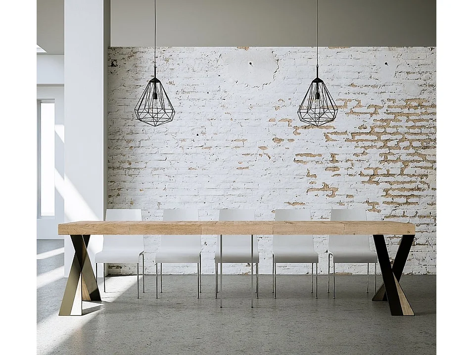 Ausziehbarer Konsolentisch 90x40/300 cm Diago Premium Eiche Natur mit Eisenrahmen aus Anthrazit