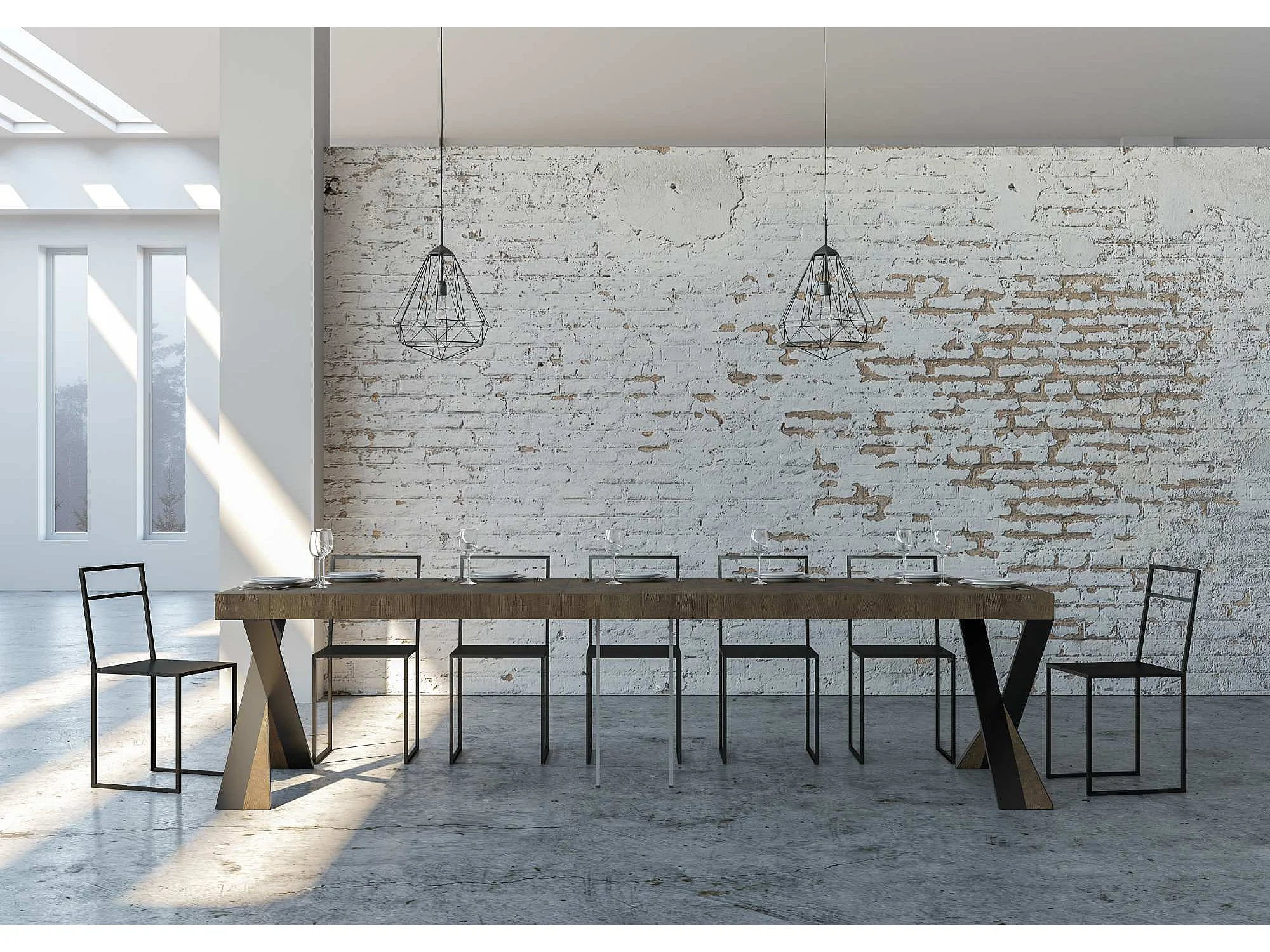 Ausziehbarer Konsolentisch 90x40/300 cm Diago Premium Nussbaum mit Eisenrahmen aus Anthrazit