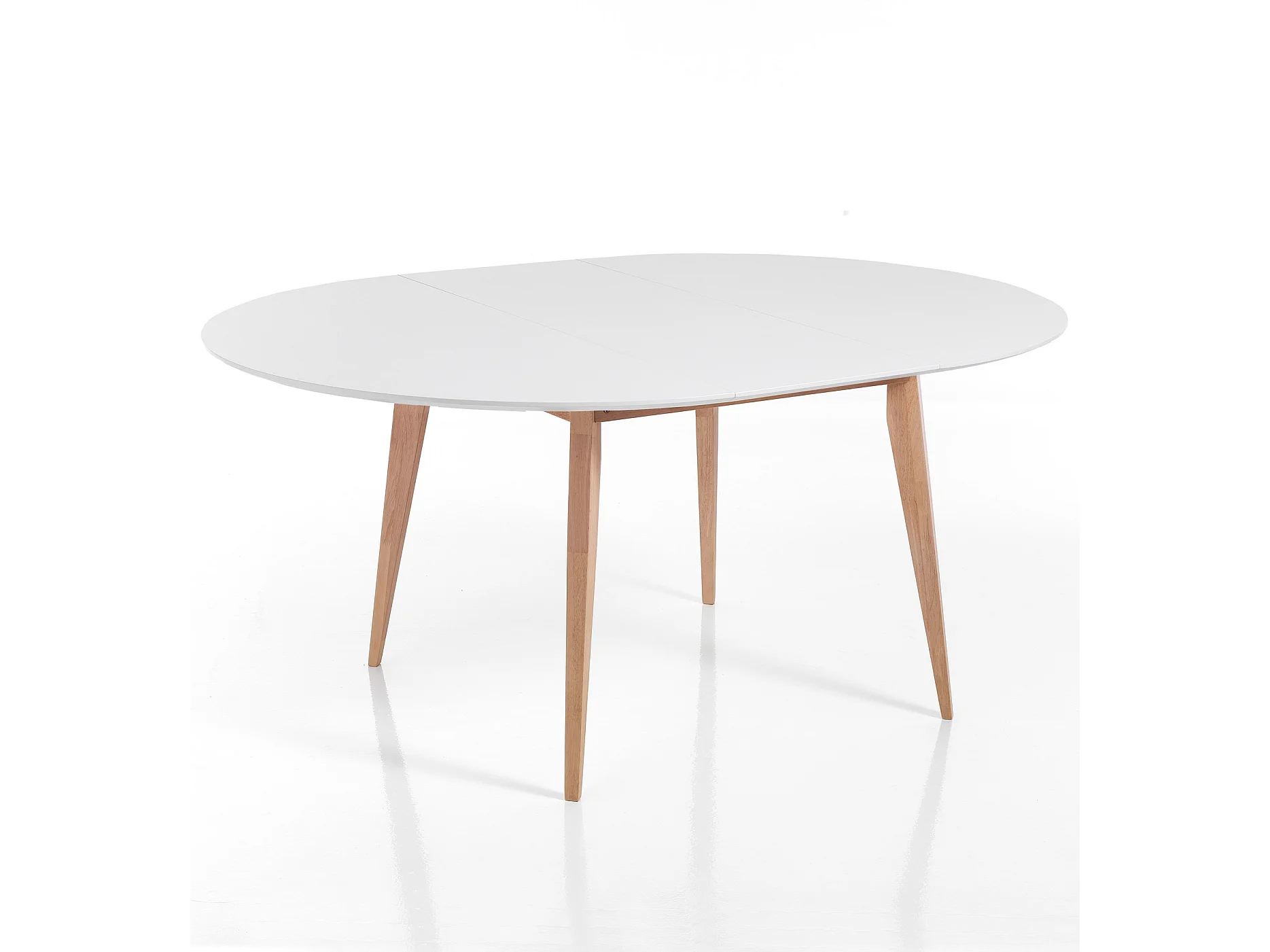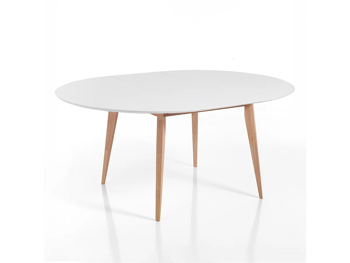 Ausziehbarer runder Tisch weiß, Eichenbeine 120-160cm Provy