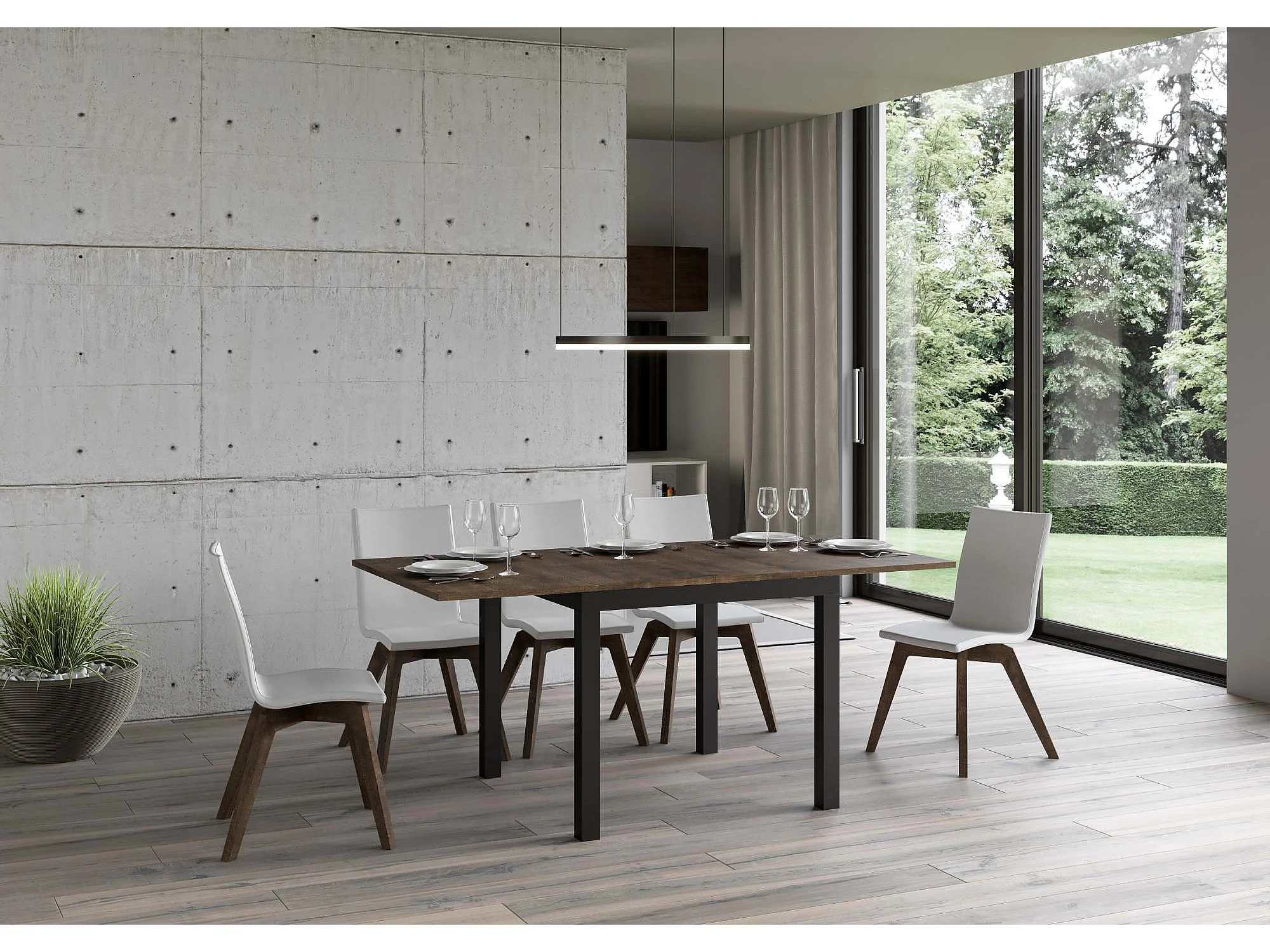 Ausziehtisch 90x90/180 cm Everyday Libra Nussbaum mit Eisenrahmen aus Anthrazit
