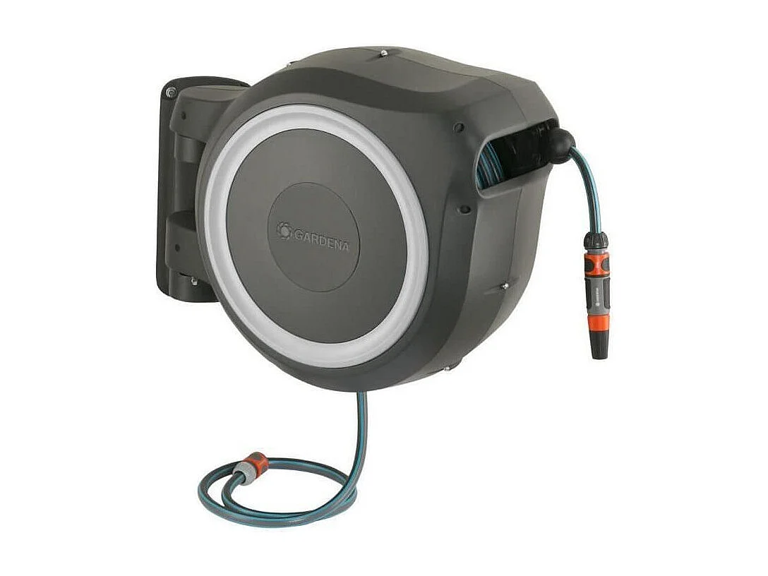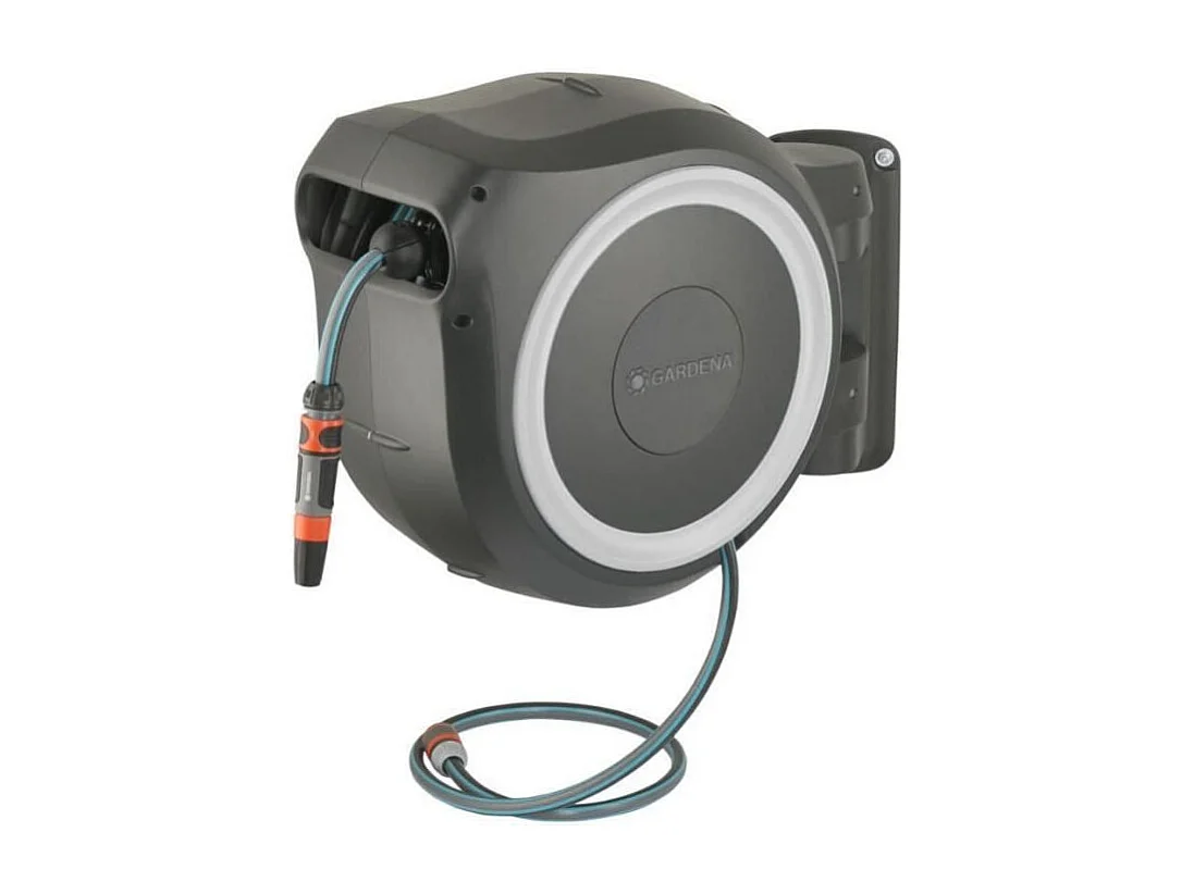 Automatische Wand-Schlauchtrommel GARDENA RollUp M/L 25m Schlauch Ø13mm mit Spritze und 180° schwenkbarer Halterung