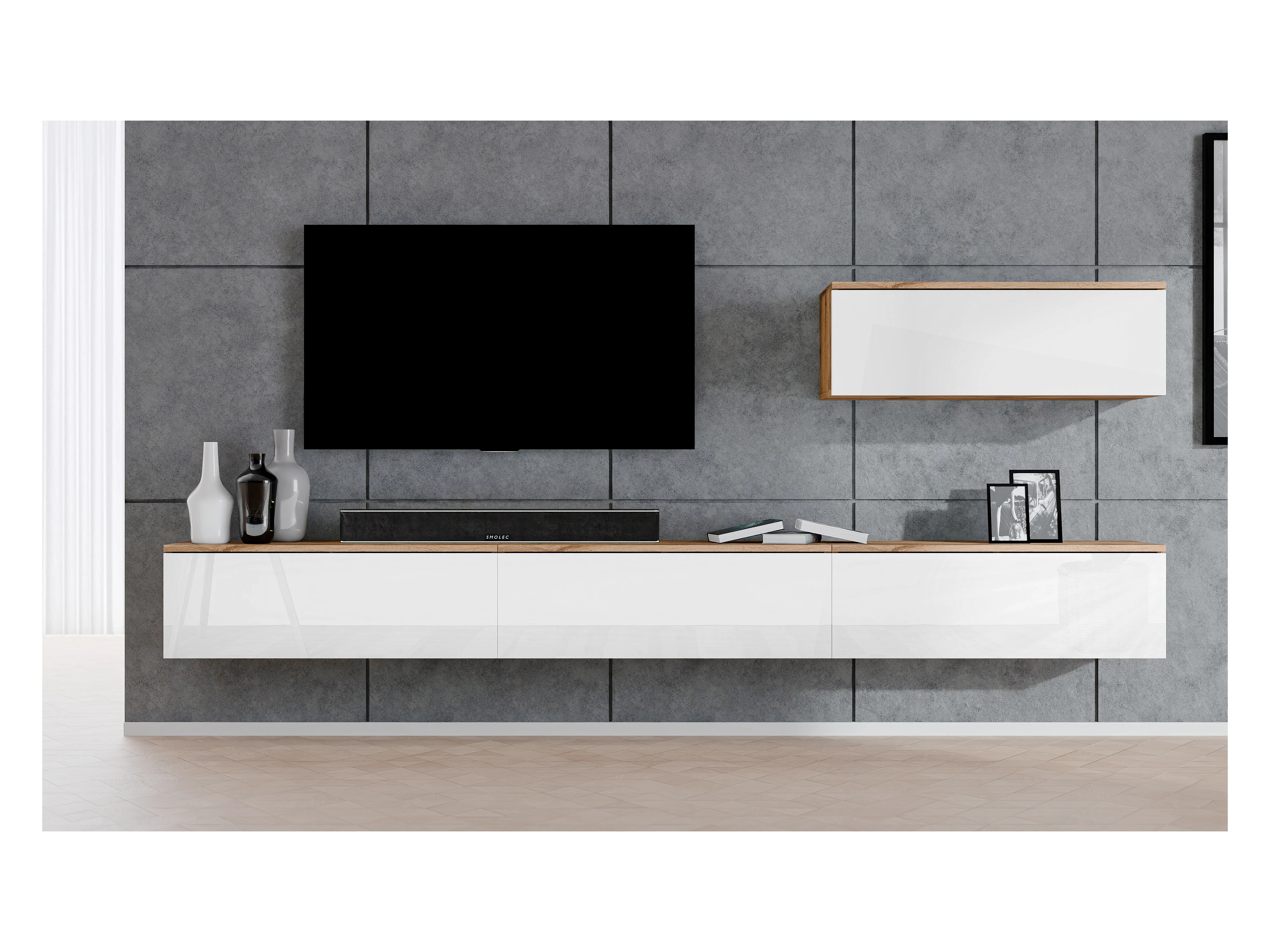 AX LIVING Anbauwand Loriano IV Wohnwand Eiche Wotan/weiß Hochglanz 400