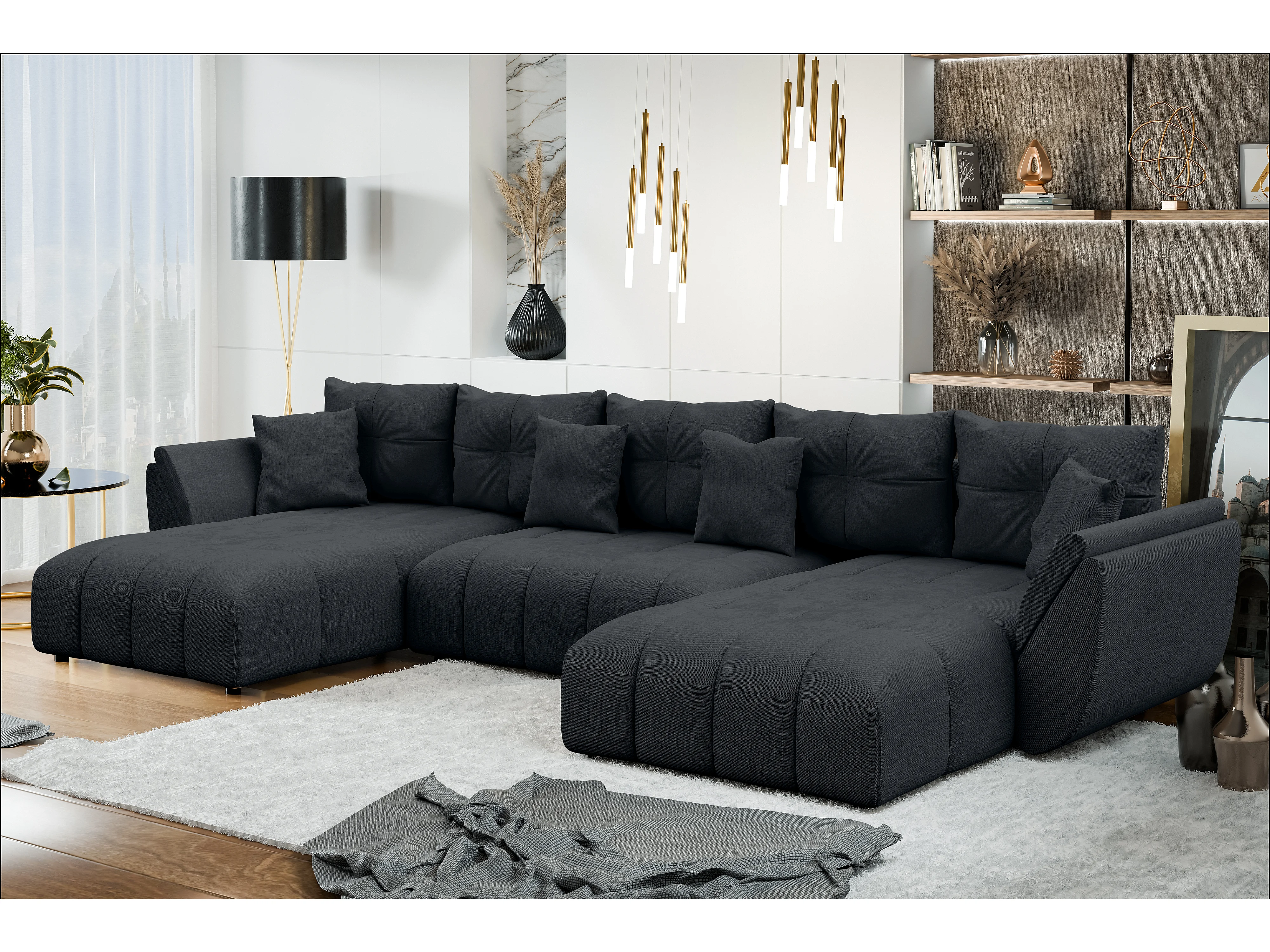 AX LIVING Couch U Form mit Schlaffunktion Antalya 382 cm schwarz