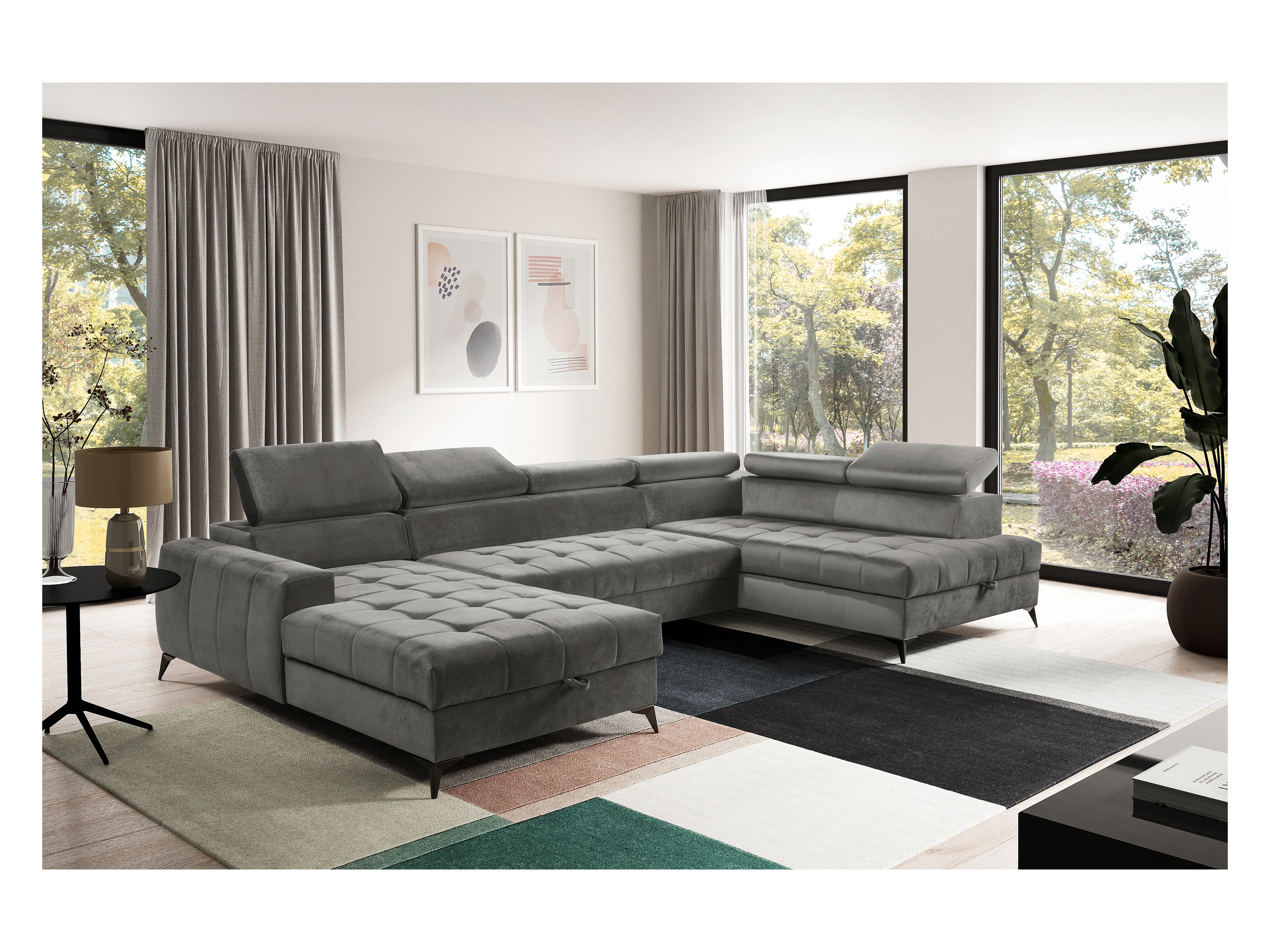 AX LIVING Grau Eckcouch mit Schlaffunktion Arkucio U 345cm modernes L