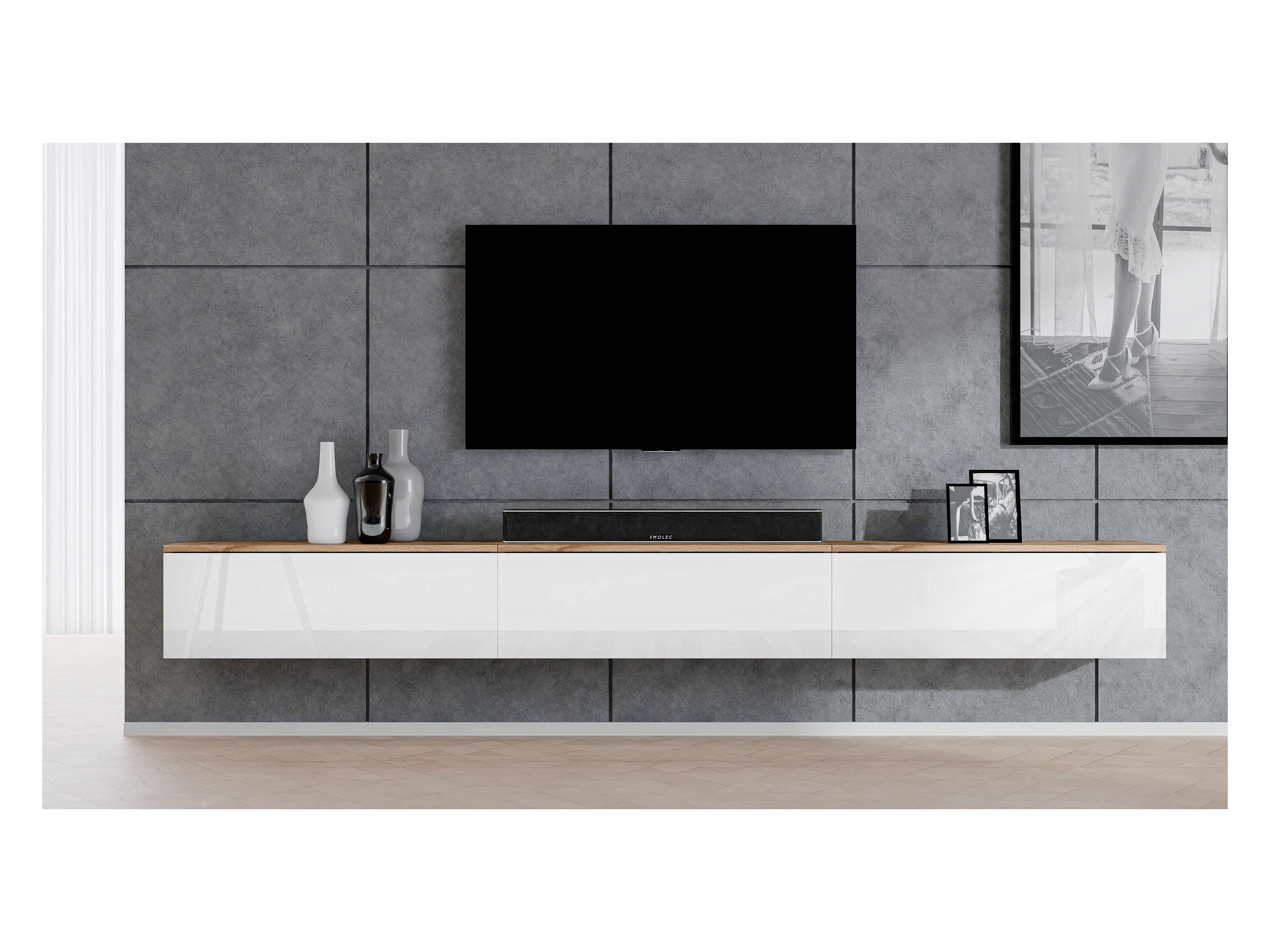 AX LIVING Lowboard 3x100cm Loriano TV Board Eiche Wotan/weiß Hochglanz