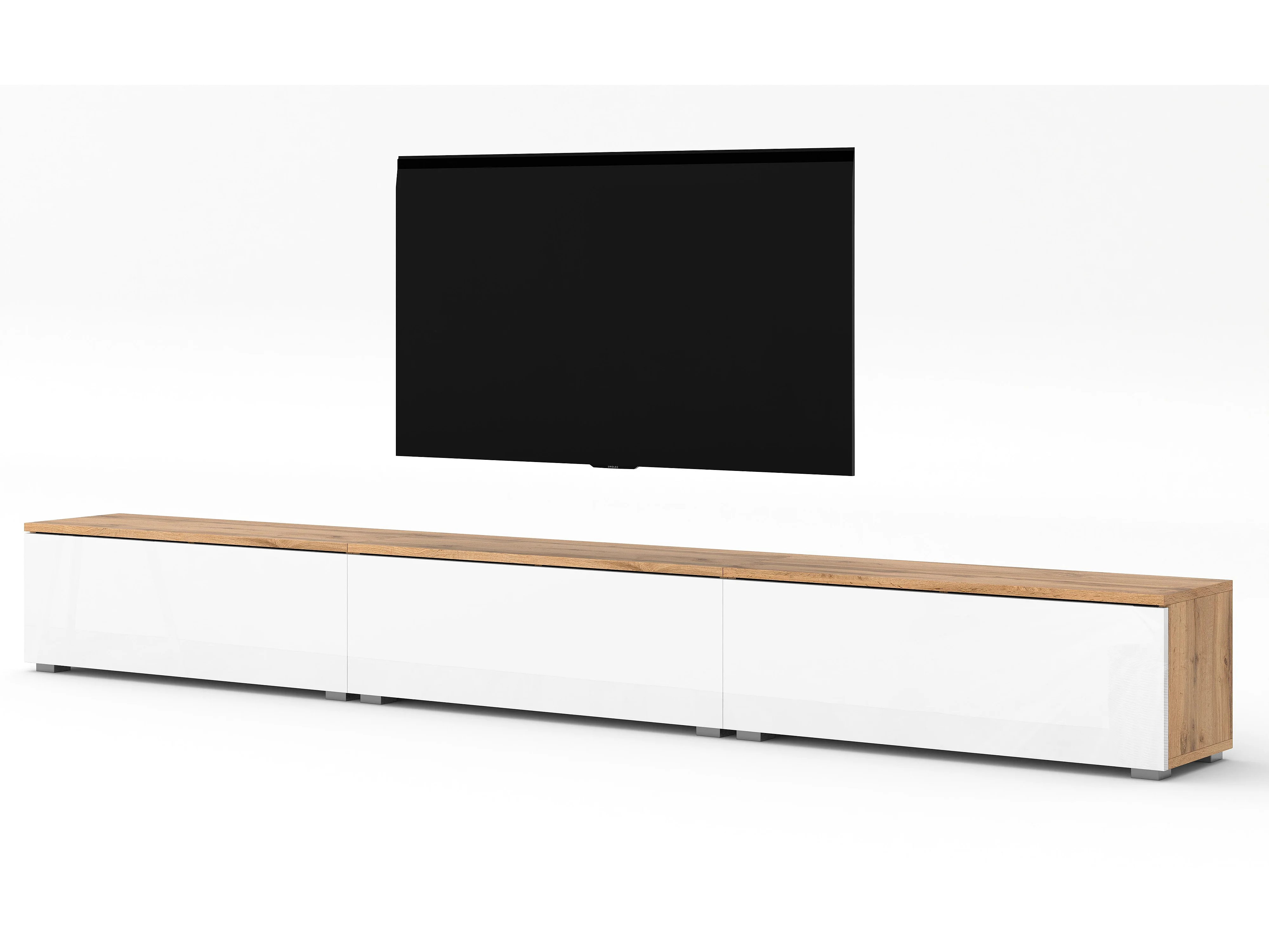 AX LIVING Lowboard 3x100cm Loriano TV Board Eiche Wotan/weiß Hochglanz