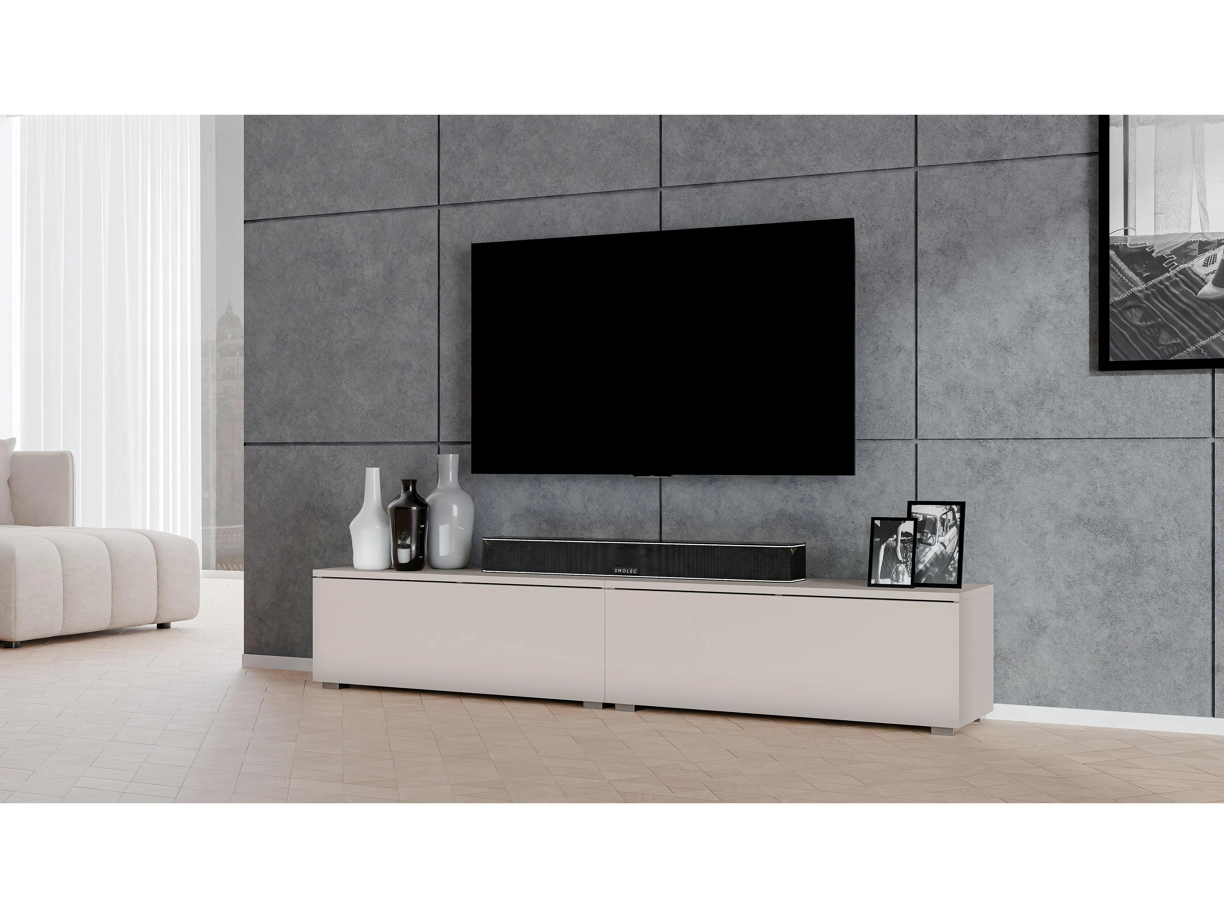 AX LIVING Lowboard beige Loriano 2x100 cm TV Board stehend Kaschmir