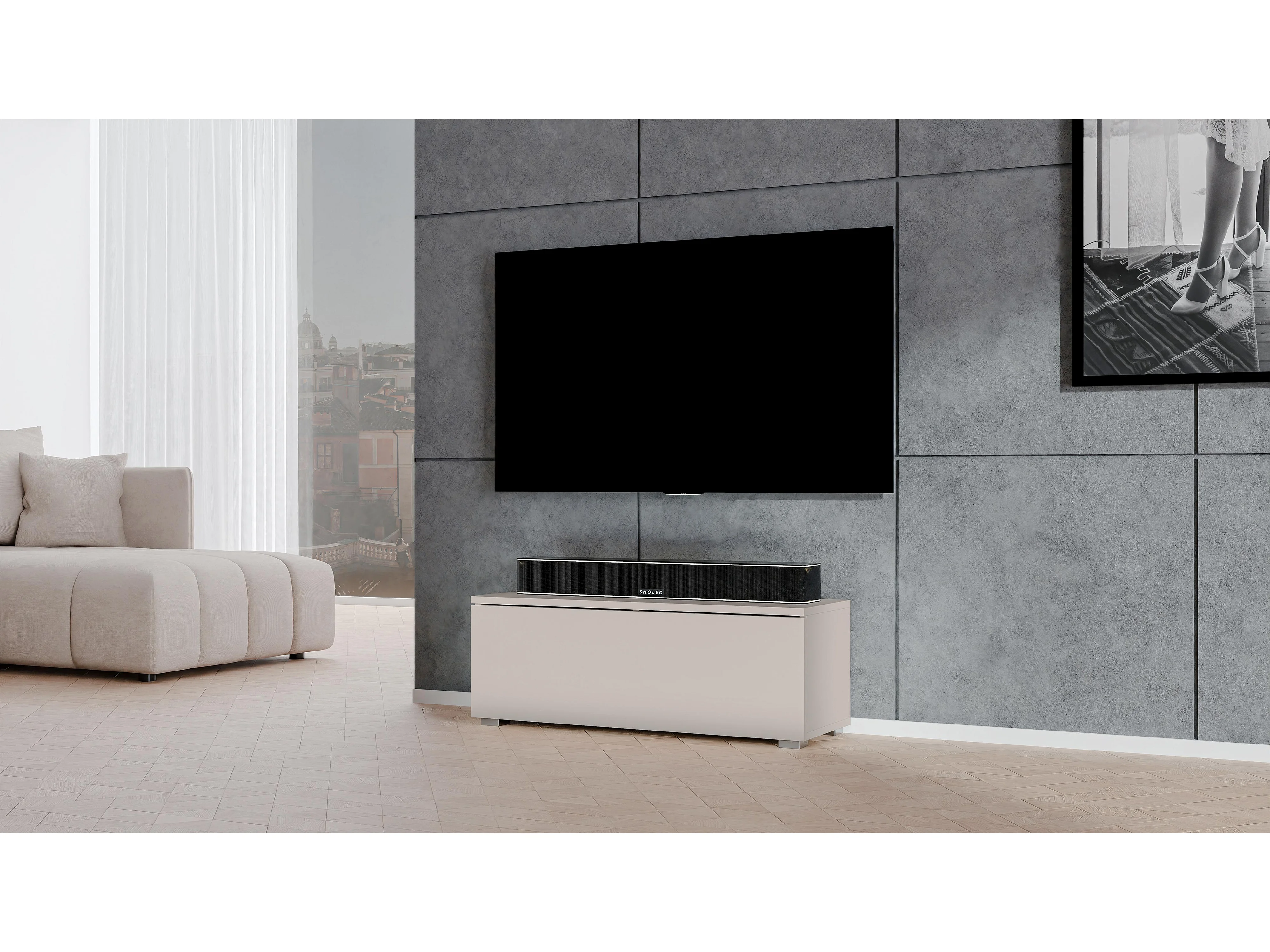 AX LIVING modernes TV Board Loriano 100 cm Lowboard beige Kaschmir