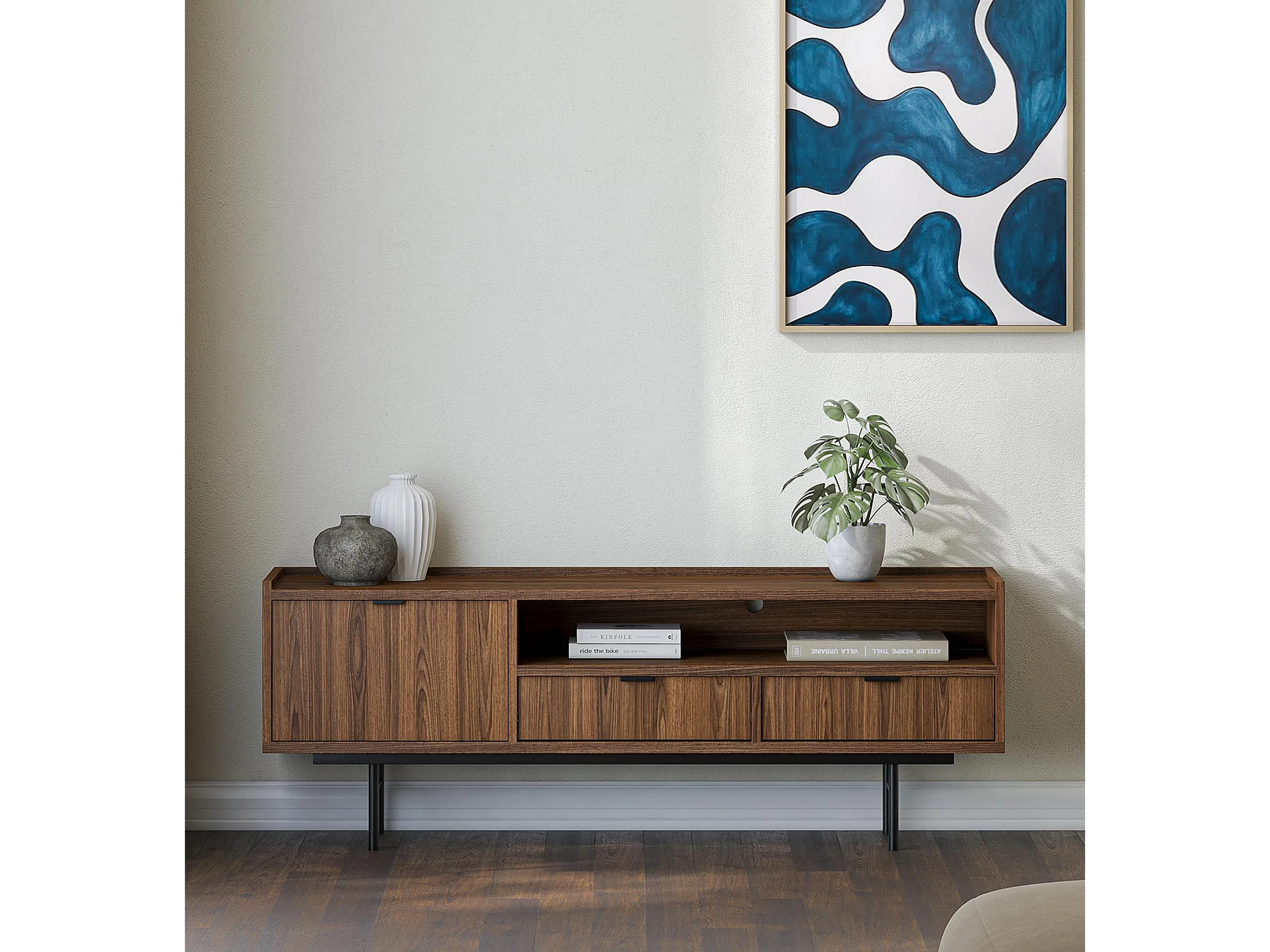 AX LIVING Nordiva Lowboard 150 cm Warmia Walnut Holz TV Möbel Modern
