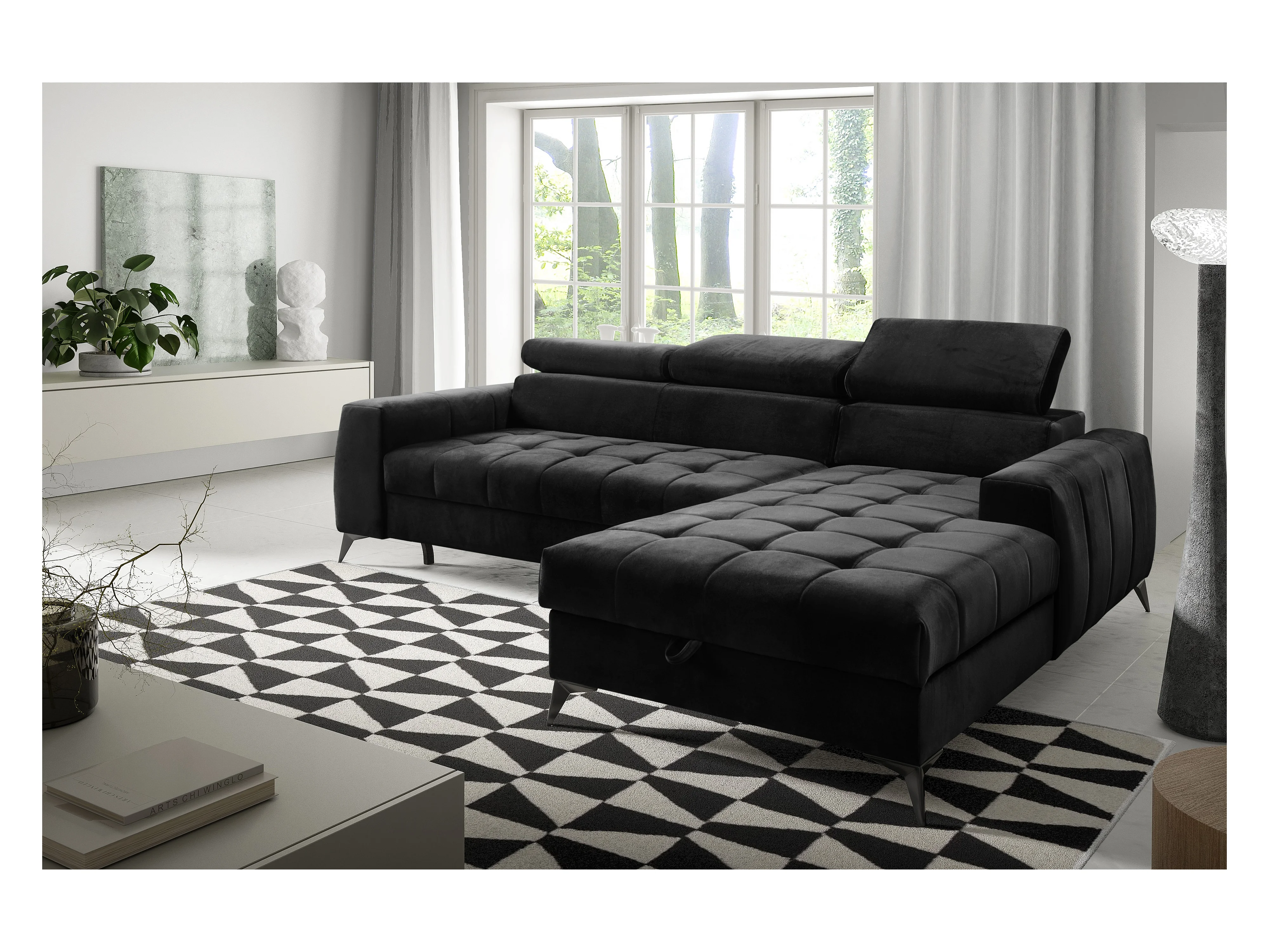 AX LIVING Schwarze Eckcouch mit Schlaffunktion Arkucio Mini 260 cm R