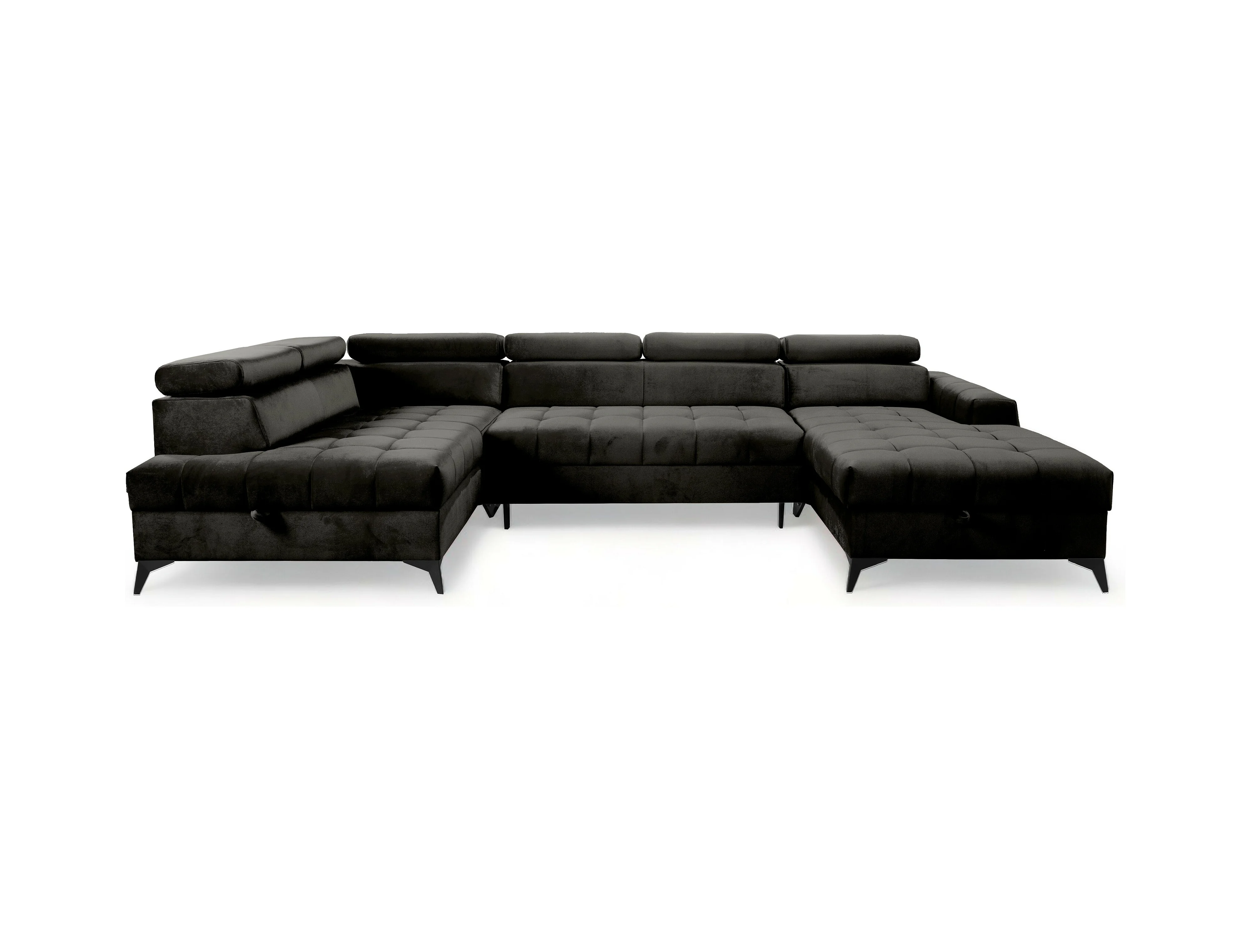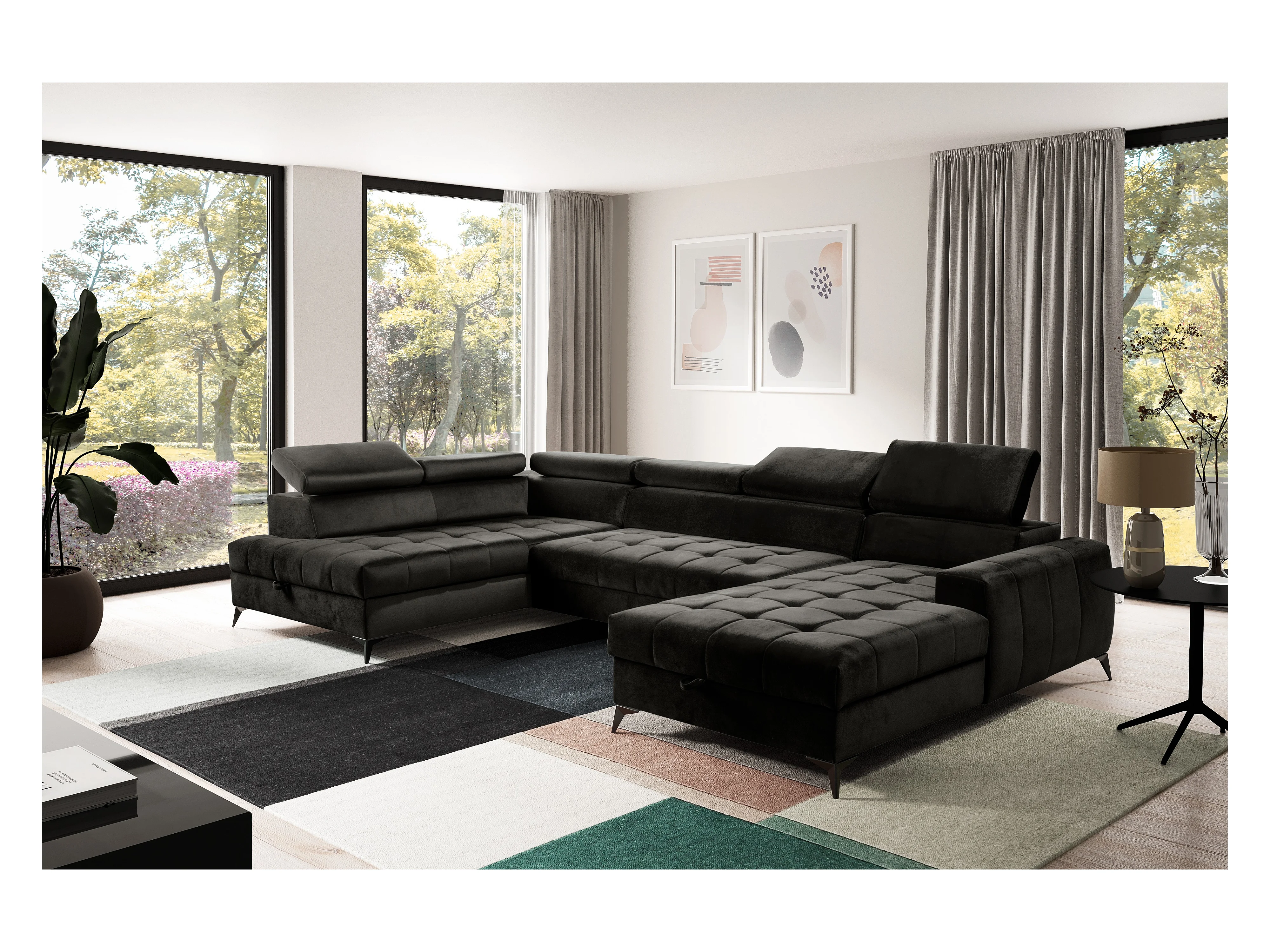 AX LIVING Schwarze Eckcouch mit Schlaffunktion Arkucio U 345cm Breite R