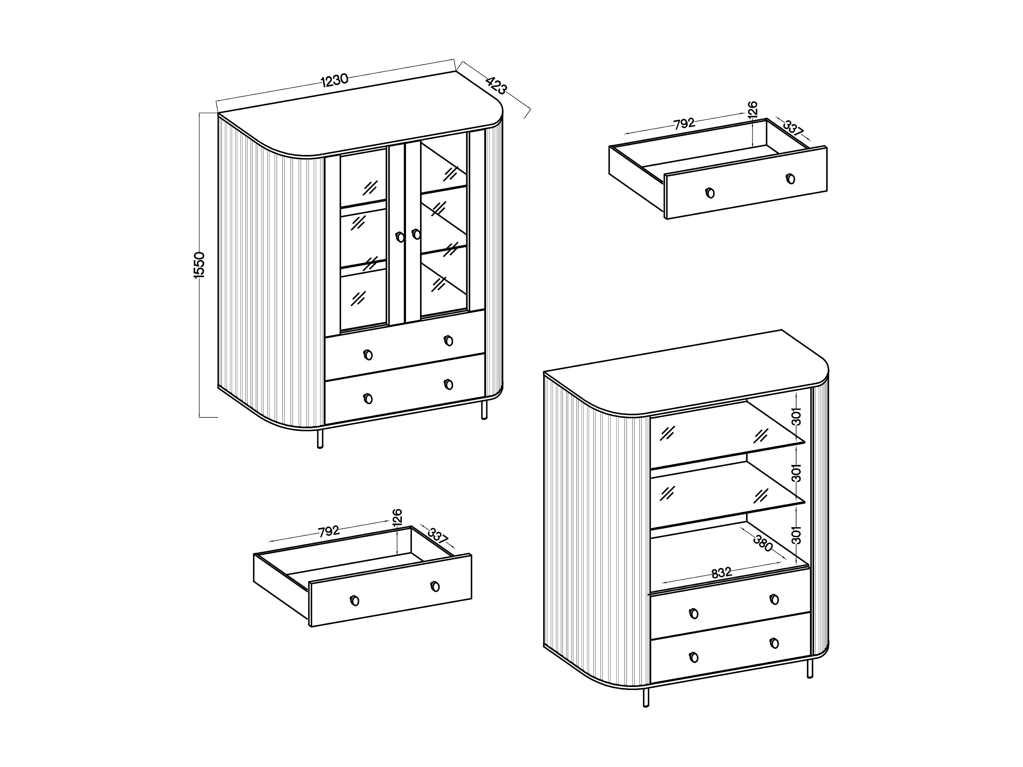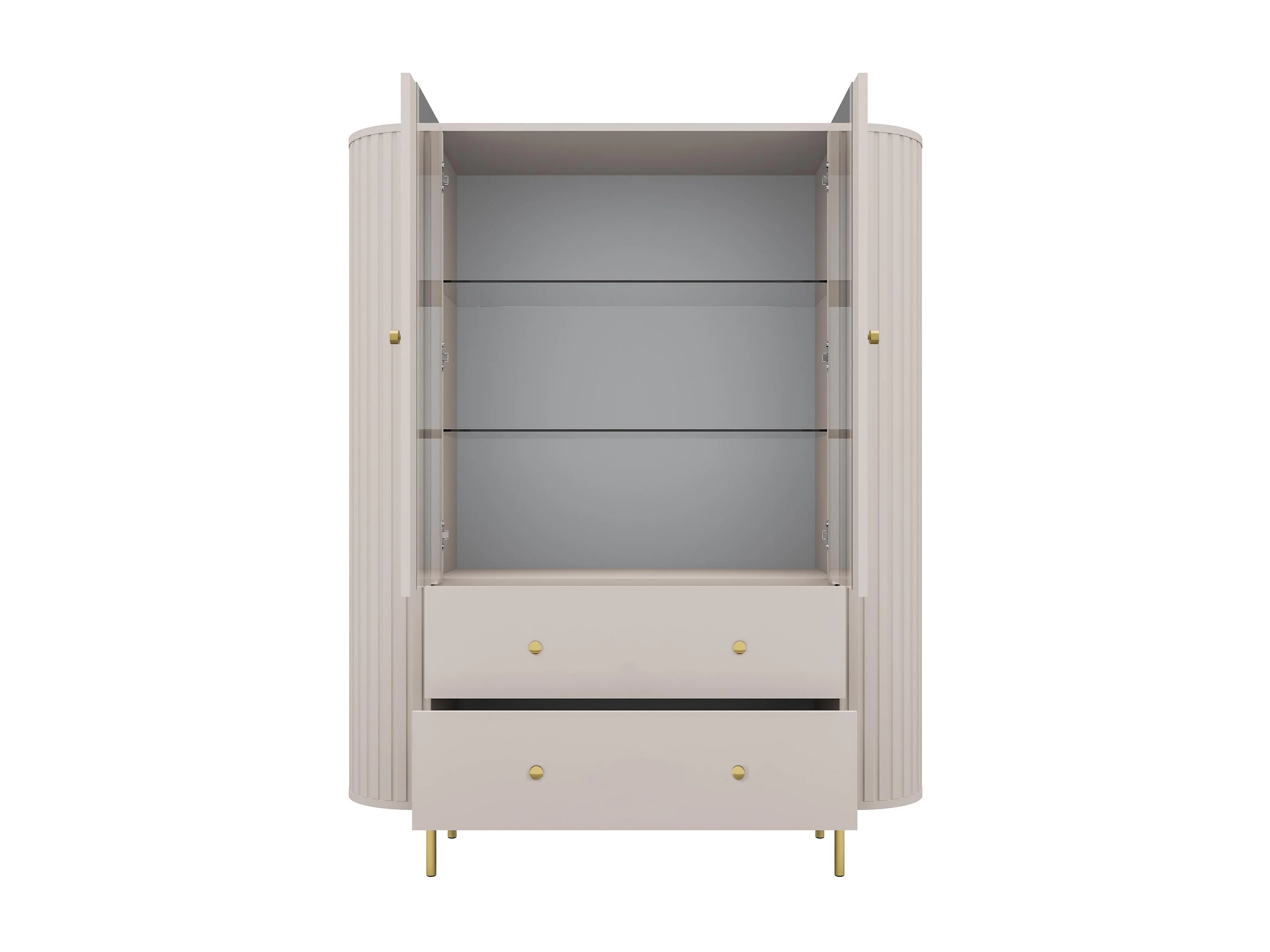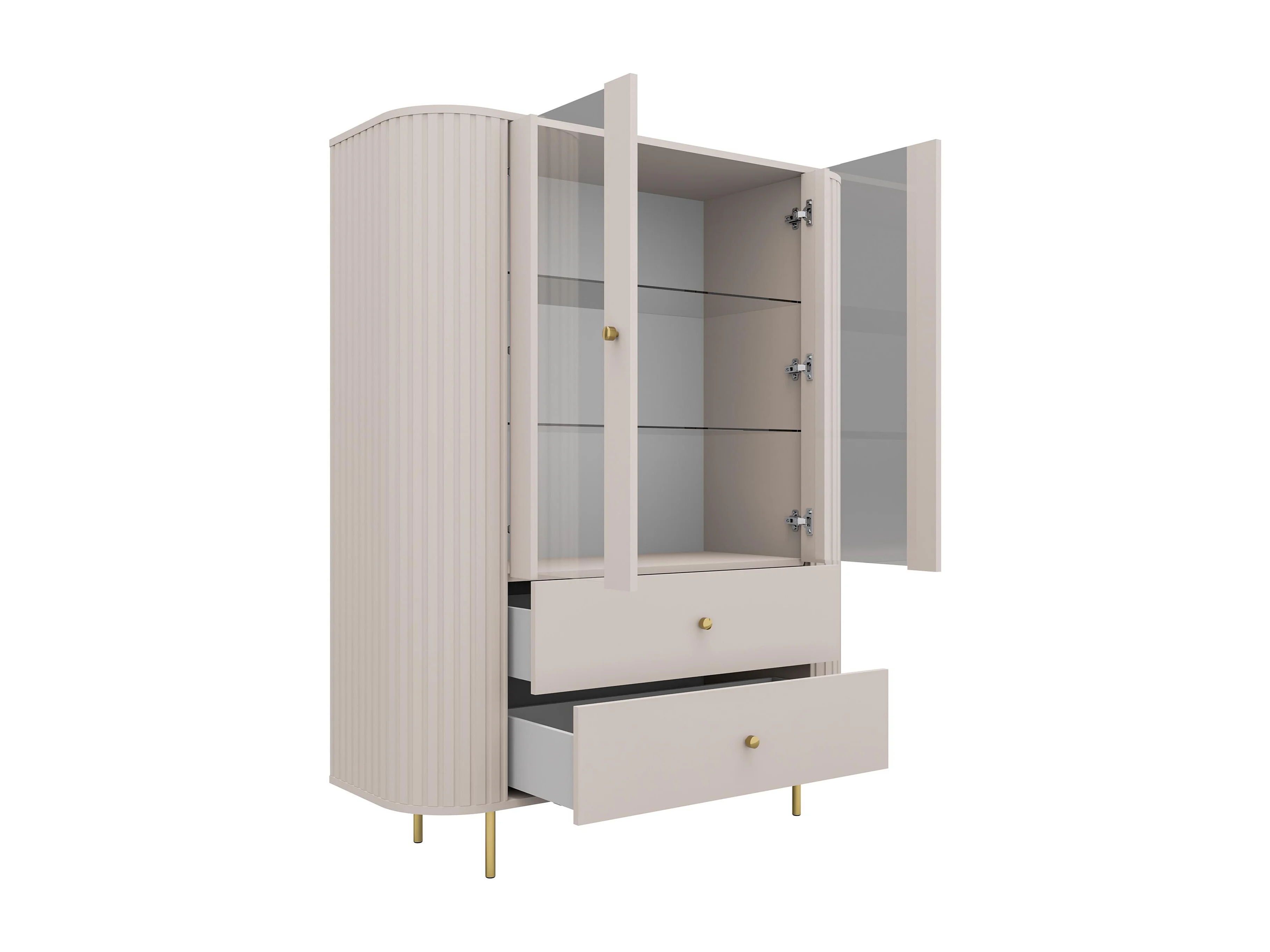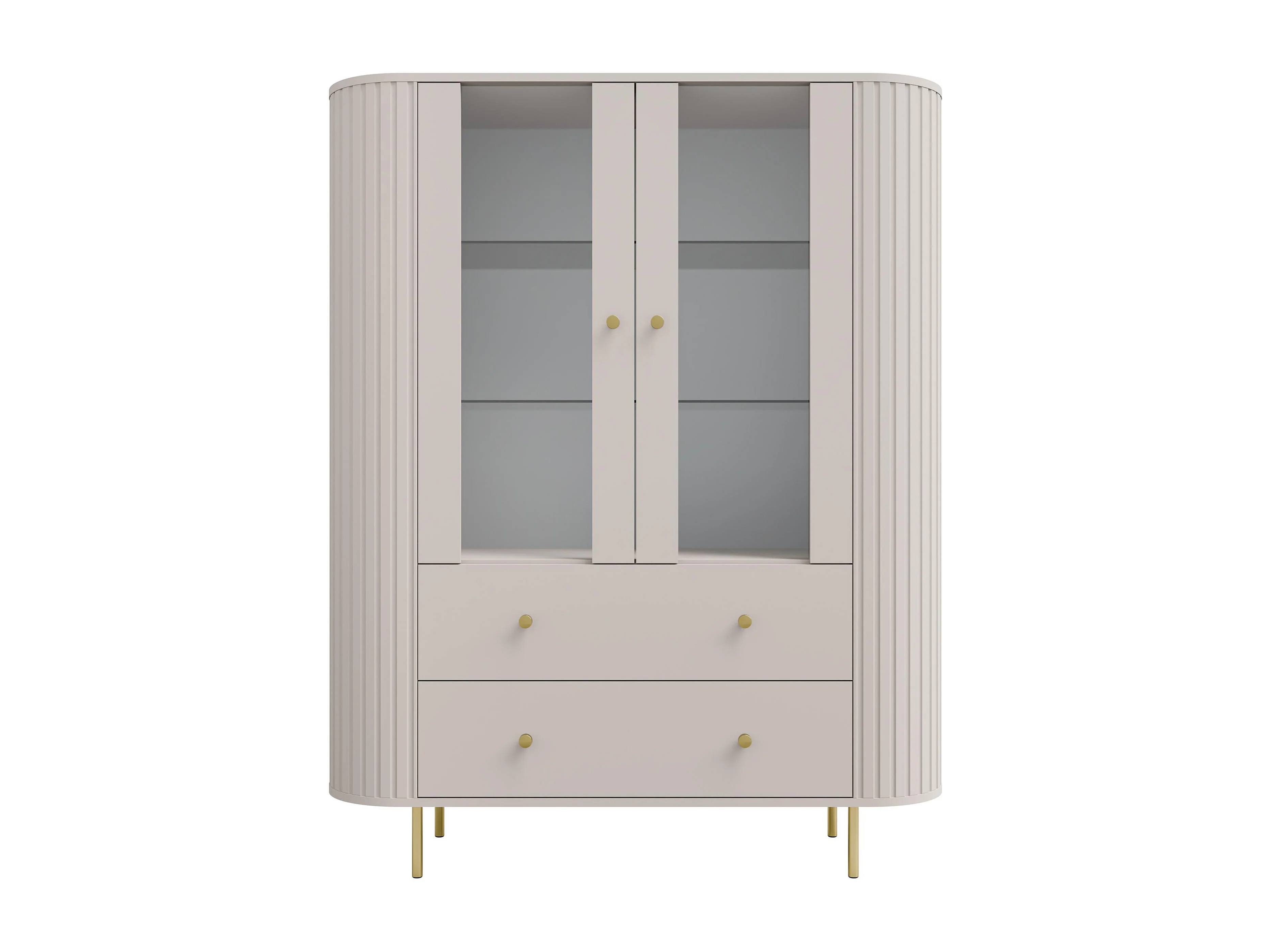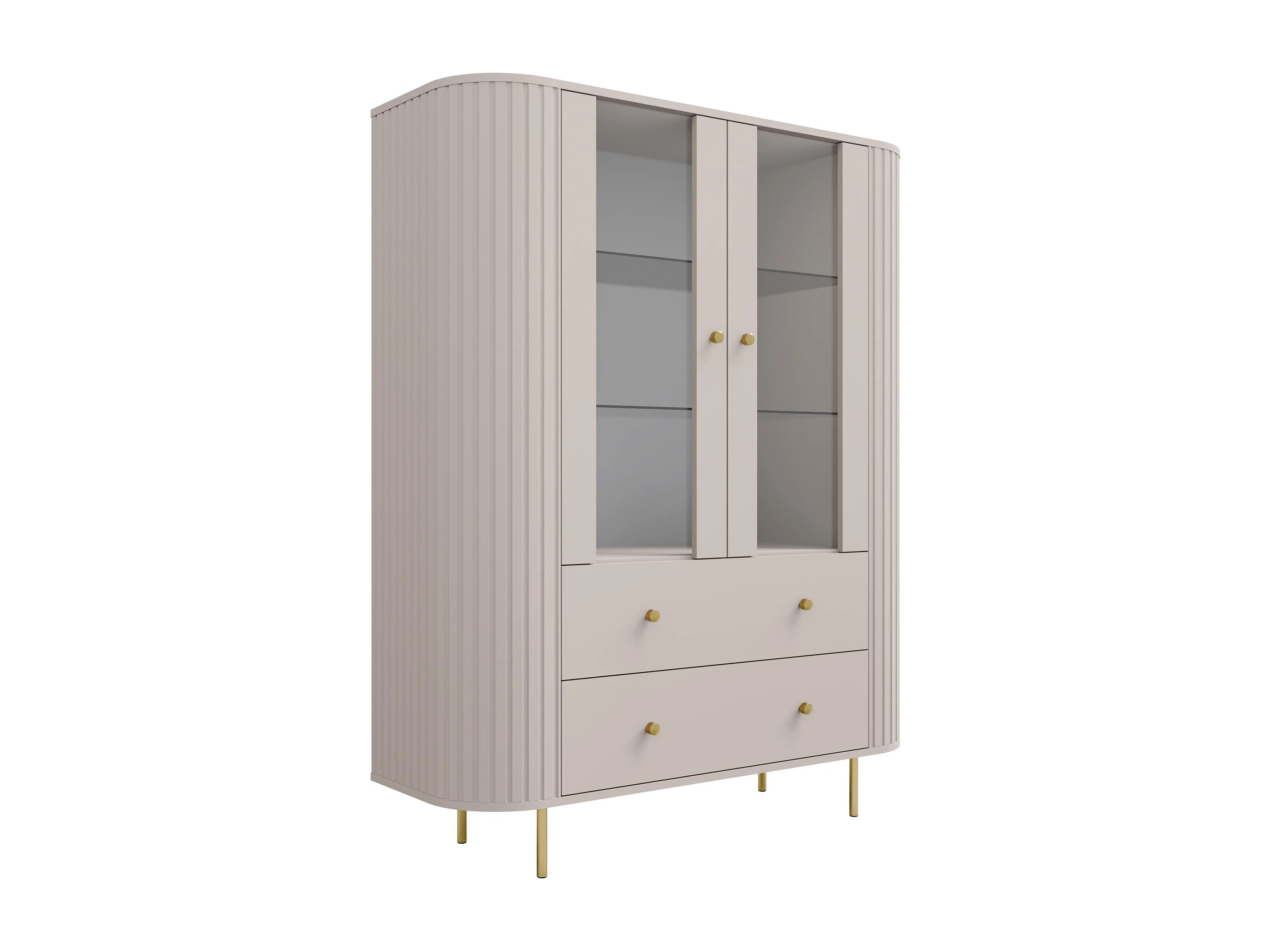AX LIVING Vitrine Halay Beige, 2 Türen & 2 Schubladen Moderne Rillenstruktur, mit runden Kanten