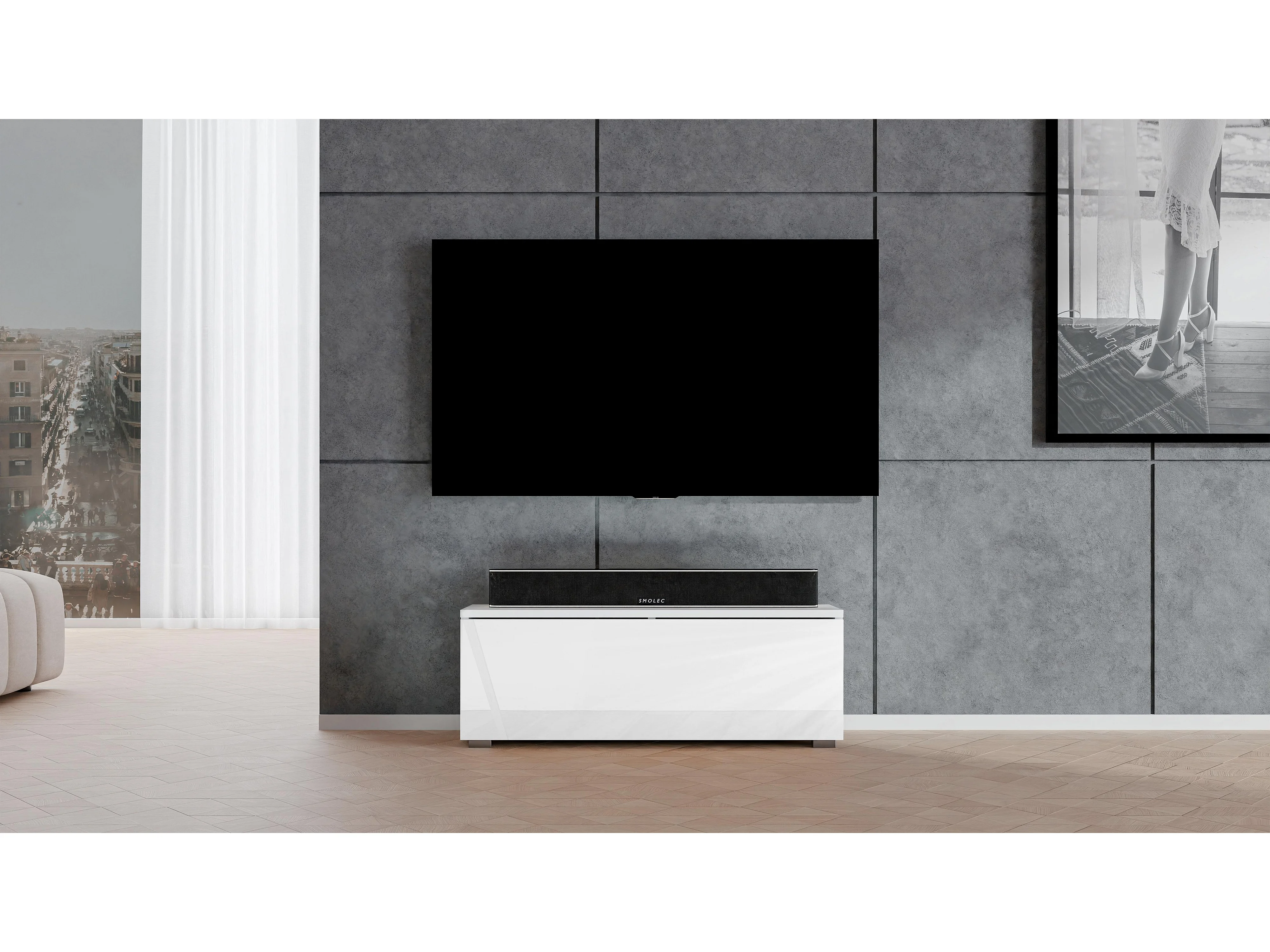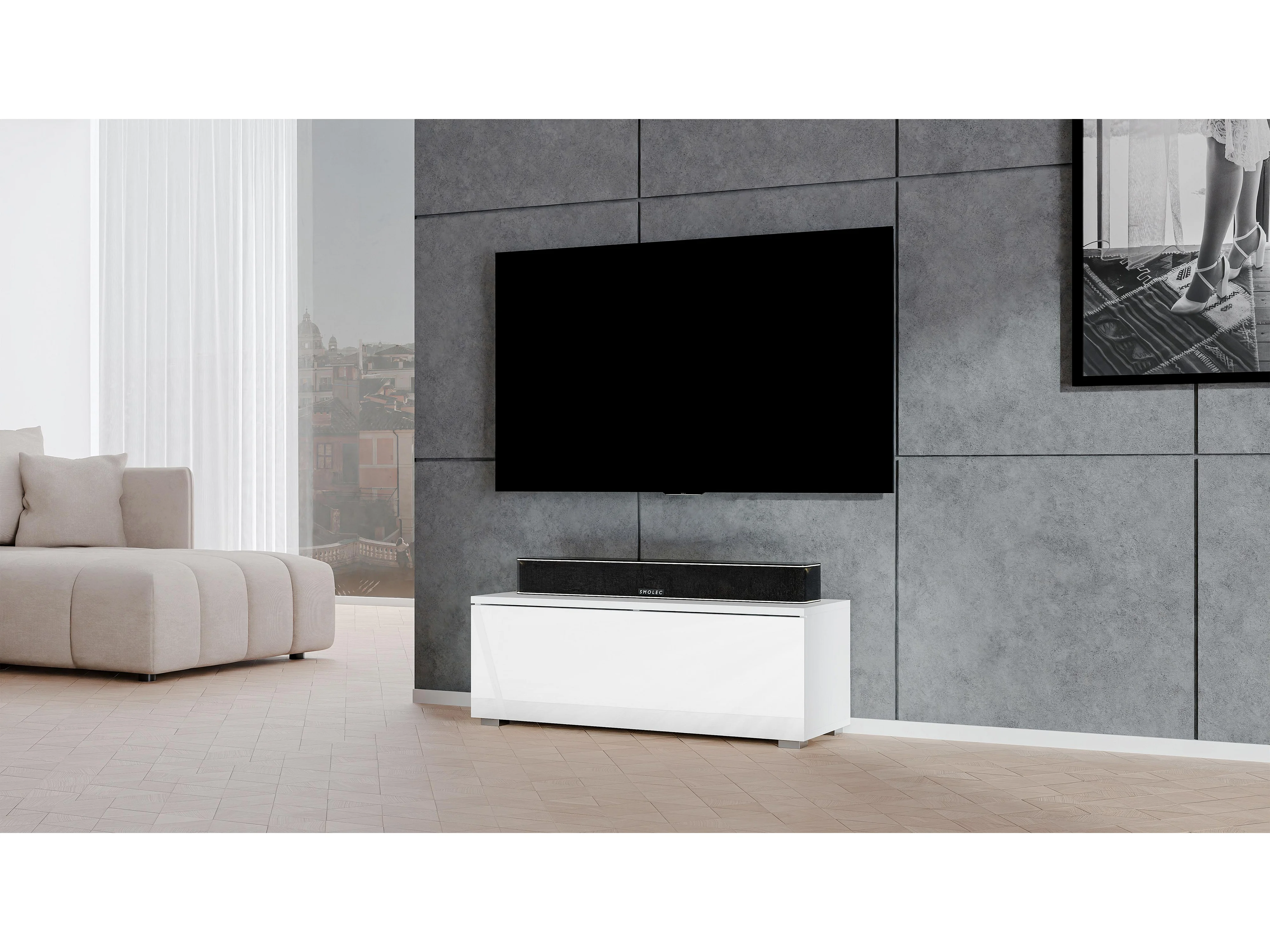 AX LIVING weißes TV Board Loriano 100 cm Lowboard weiß Matt/Hochglanz