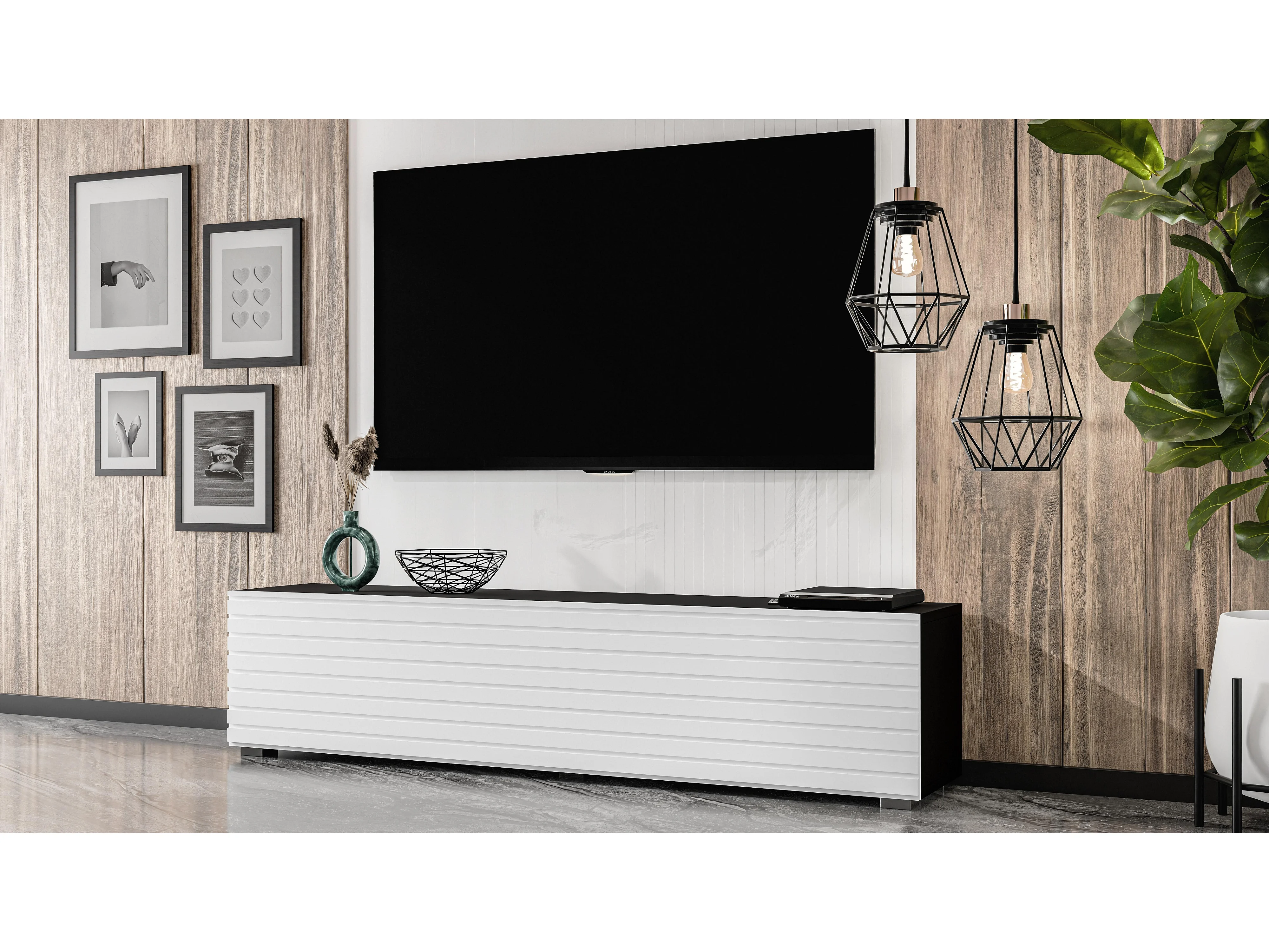 AX LIVING ZIVOLLI Lowboard 160 cm Schwarz Weiß mit Lamellenfront