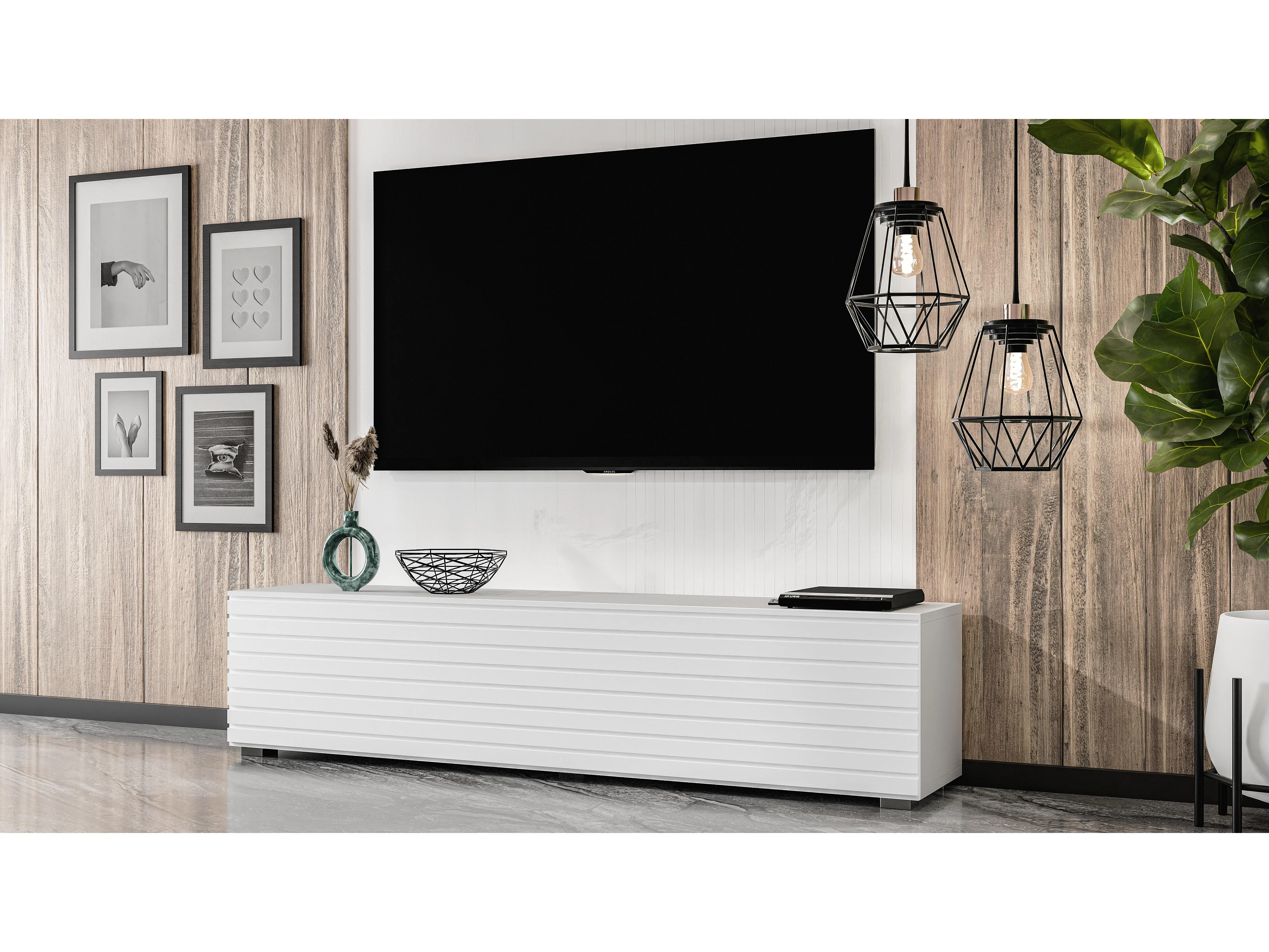 AX LIVING ZIVOLLI TV-Board 160 cm Weiß mit Lamellenfront