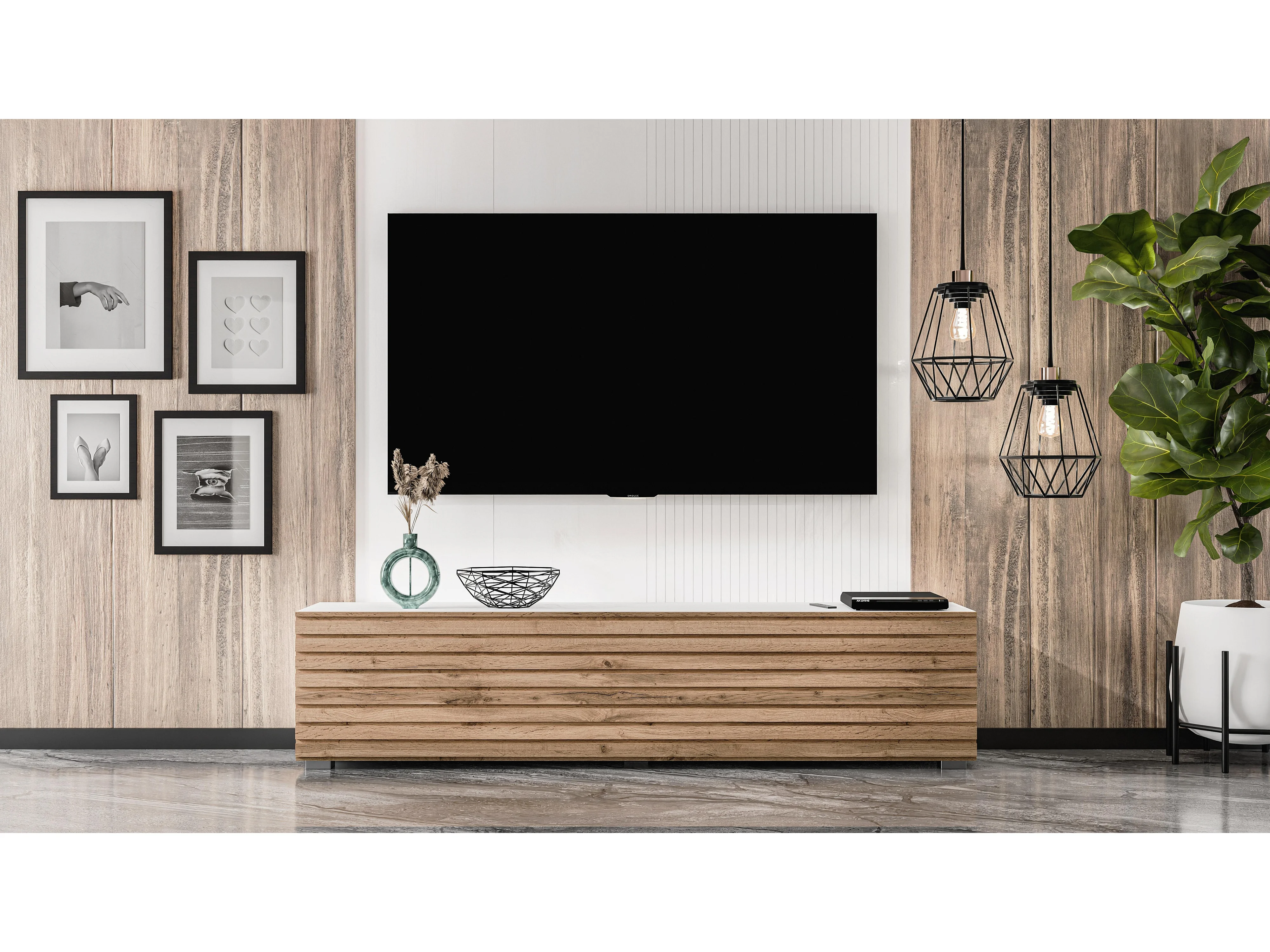 AX LIVING ZIVOLLI TV-Board 160 cm Weiß mit Wotan Lamellenfront