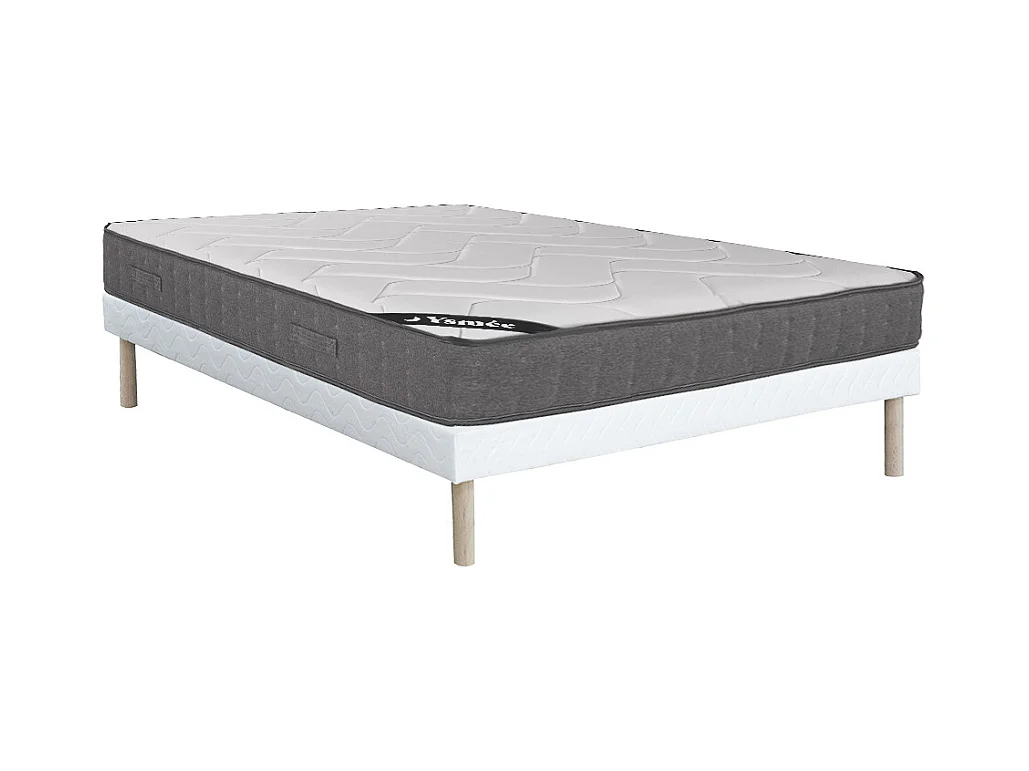 Set aus Bettgestell + Matratze - 140 x 190 cm - 5-Zonen-Taschenfederkern & Auflage aus Memory Schaum - Stärke 23 cm - BABYLONE von YSMÉE