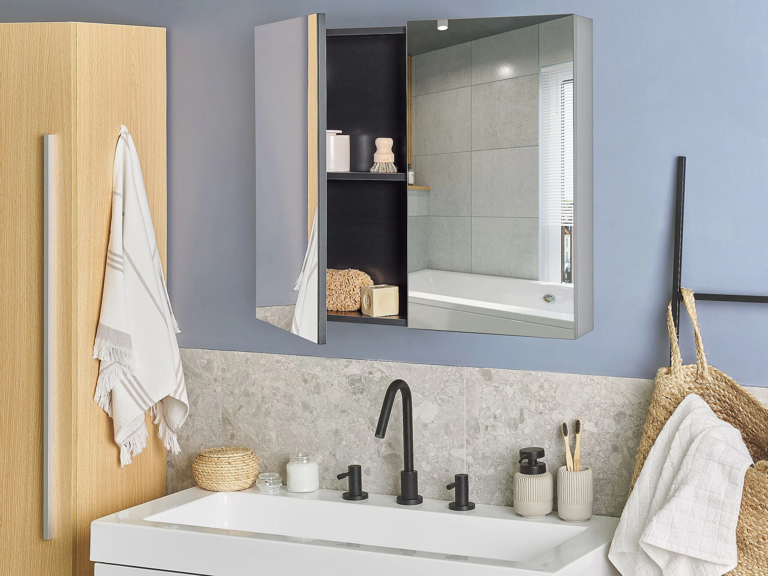 Moderner Bad Spiegelschrank schwarz rechteckig 80x70 cm 1 türig Navarra