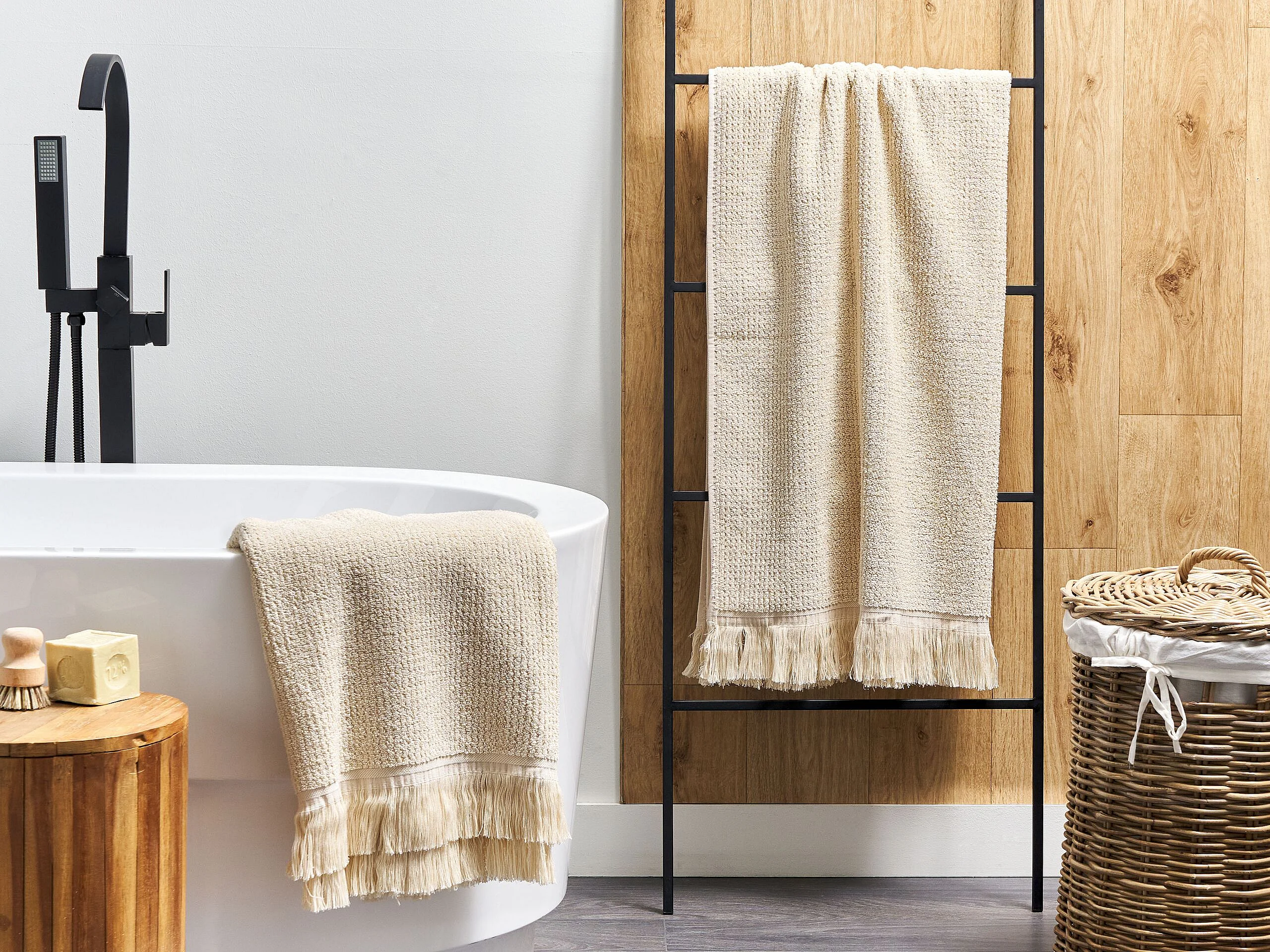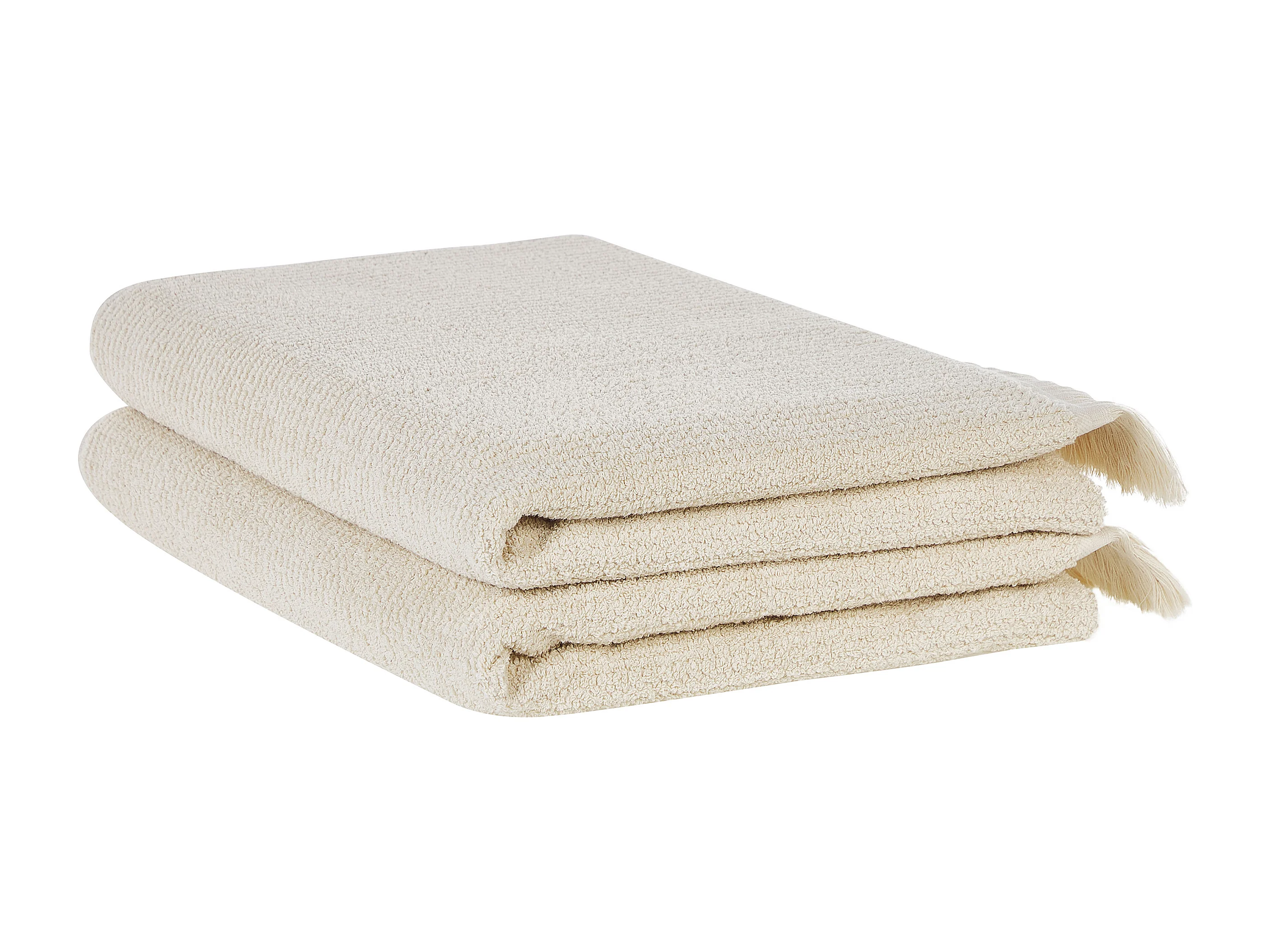 Luxus Handtuch 2er Set Baumwolle beige Strandtuch 100 x 150 cm mit Fransen Atiu