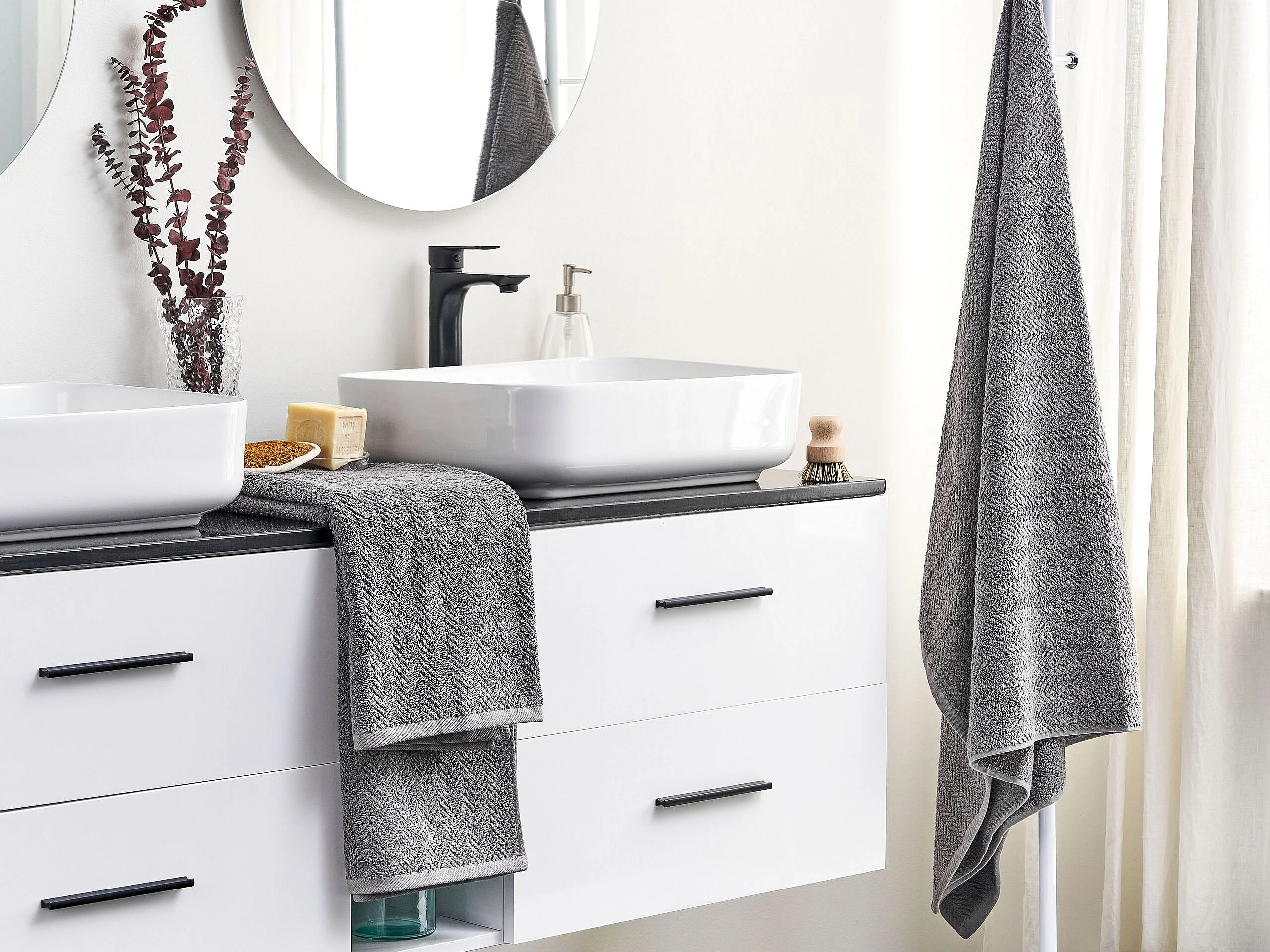 Luxus Handtuch 2er Set Frottee Baumwolle grau Strandtuch 100 x 150 cm Mitiaro