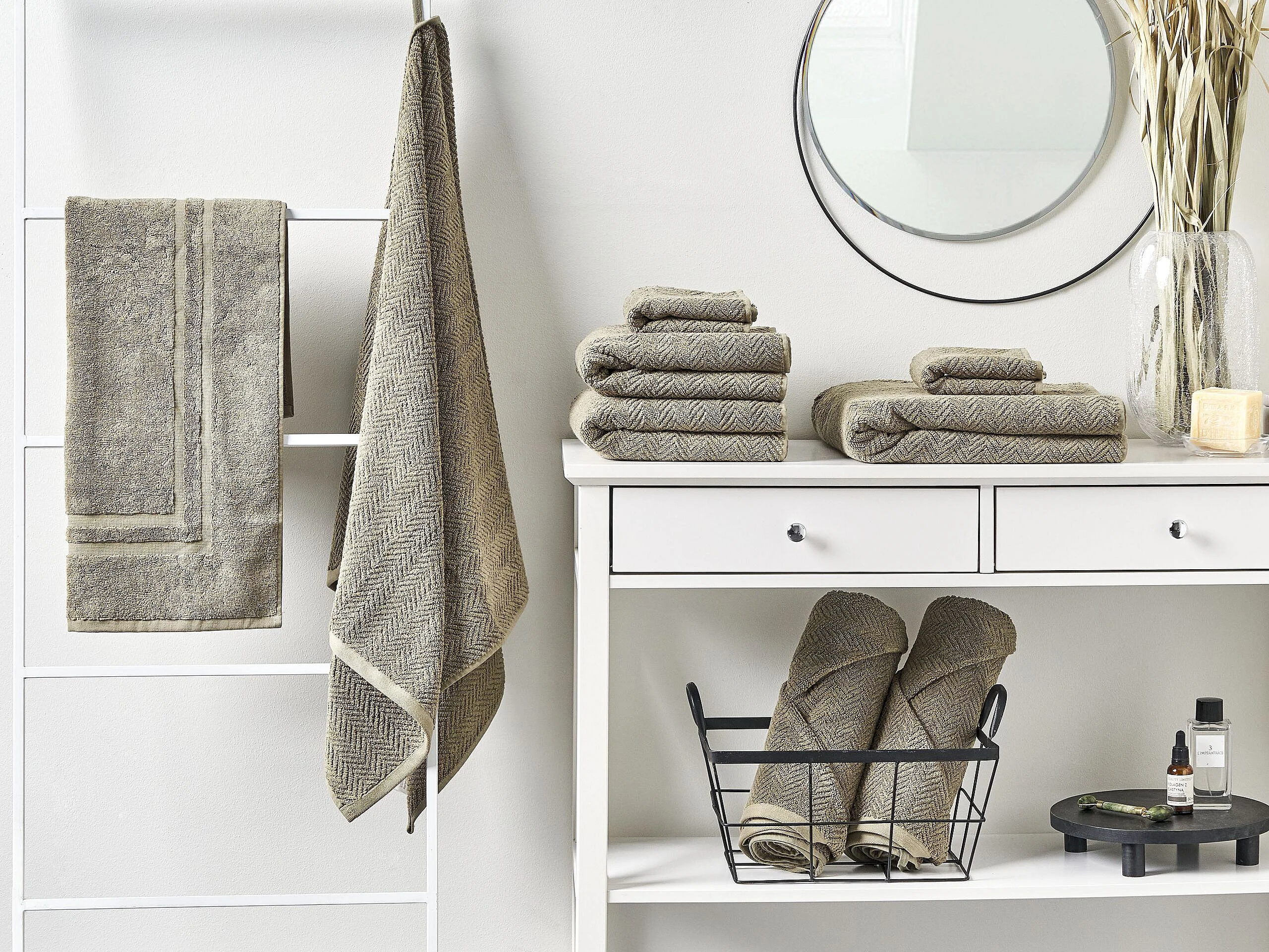 Luxus Handtuch Set mit Badematte Frottee Baumwolle grün 9-teilig Modern Mitiaro