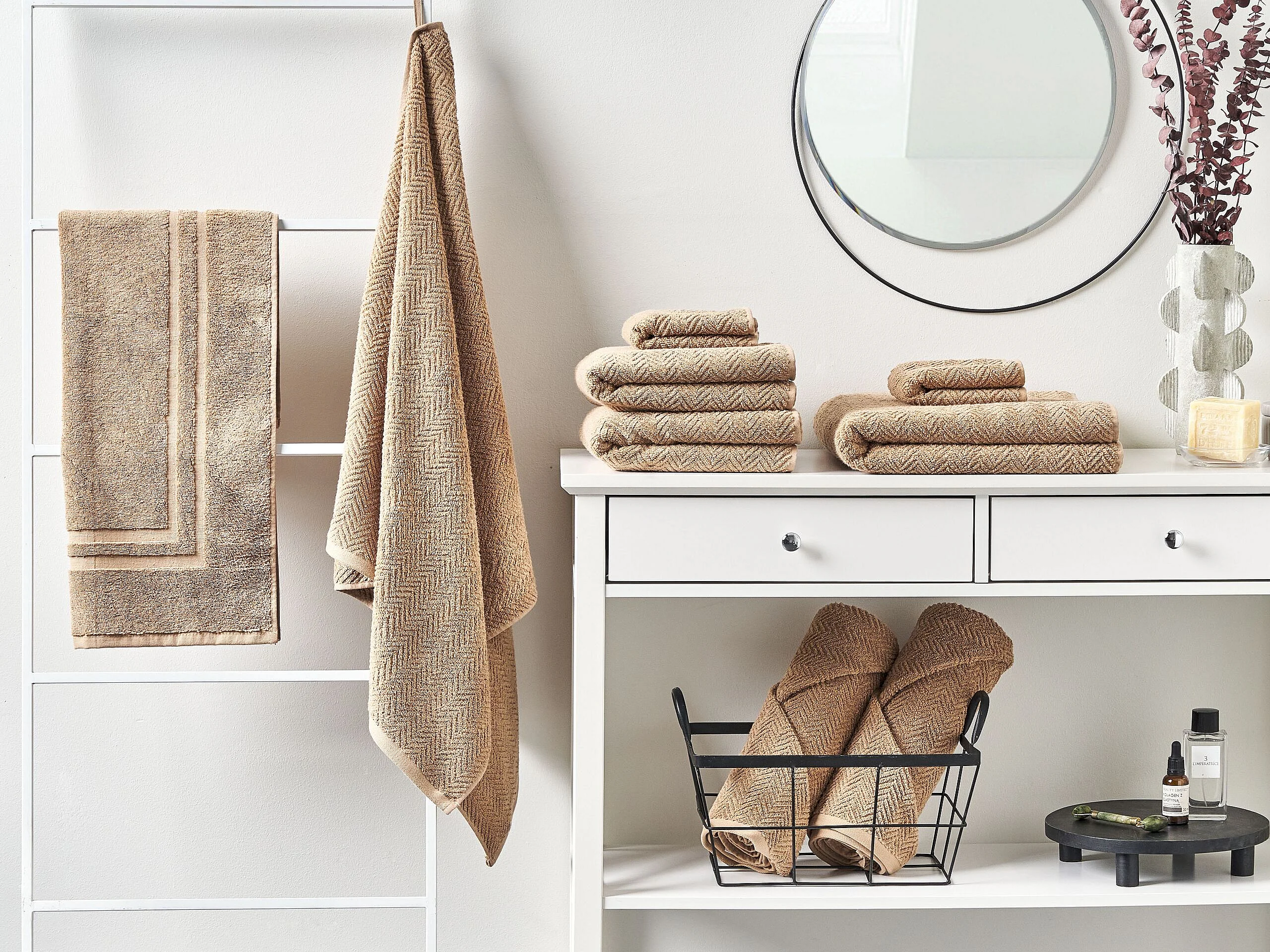 Luxus Handtuch Set mit Badematte Frottee Baumwolle beige 9-teilig Modern Mitiaro