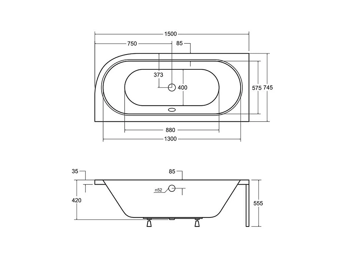Badewanne Eckwanne AVITA SLIM 150x75 Rechts | Ablauf & Füße GRATIS !