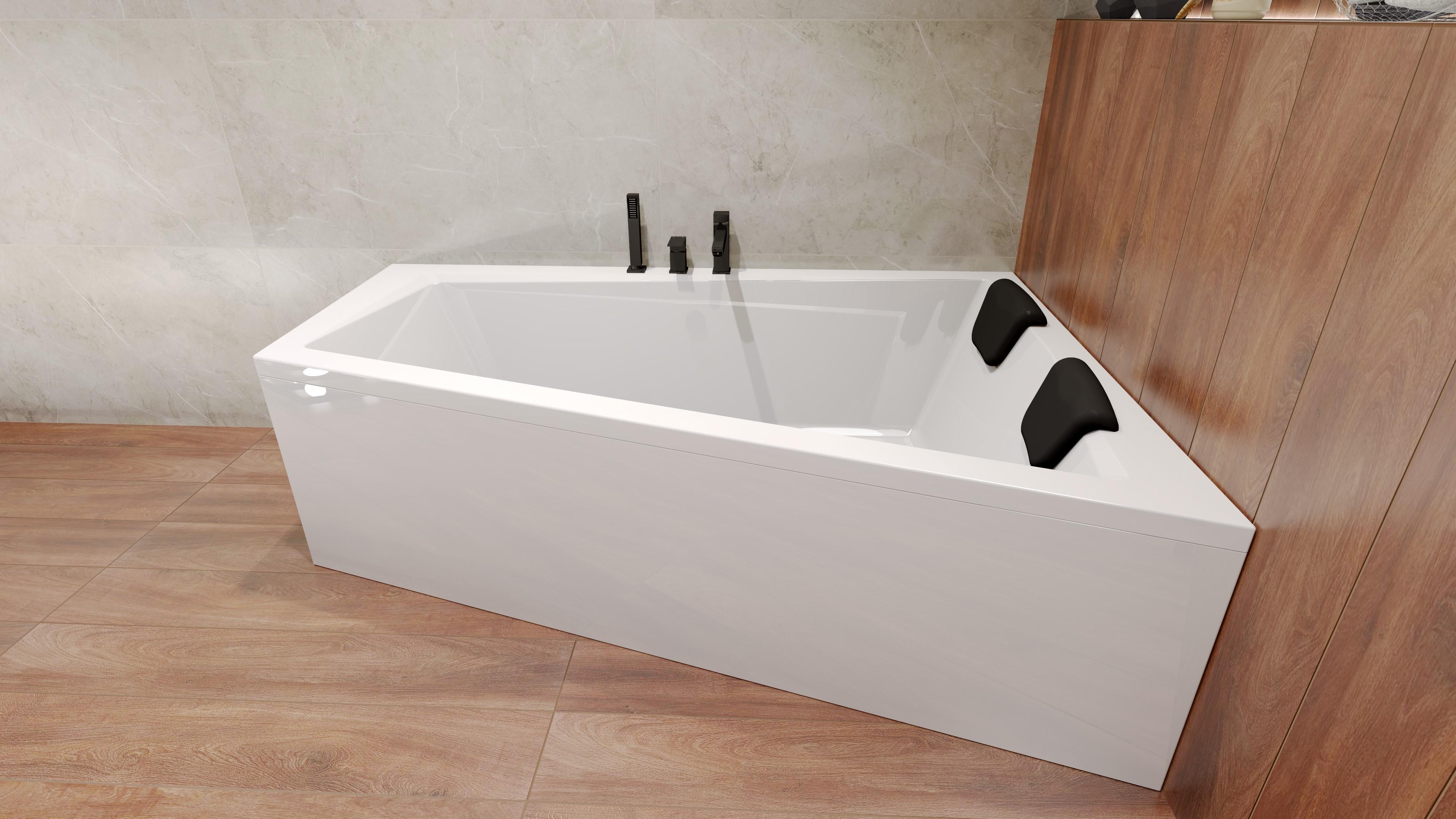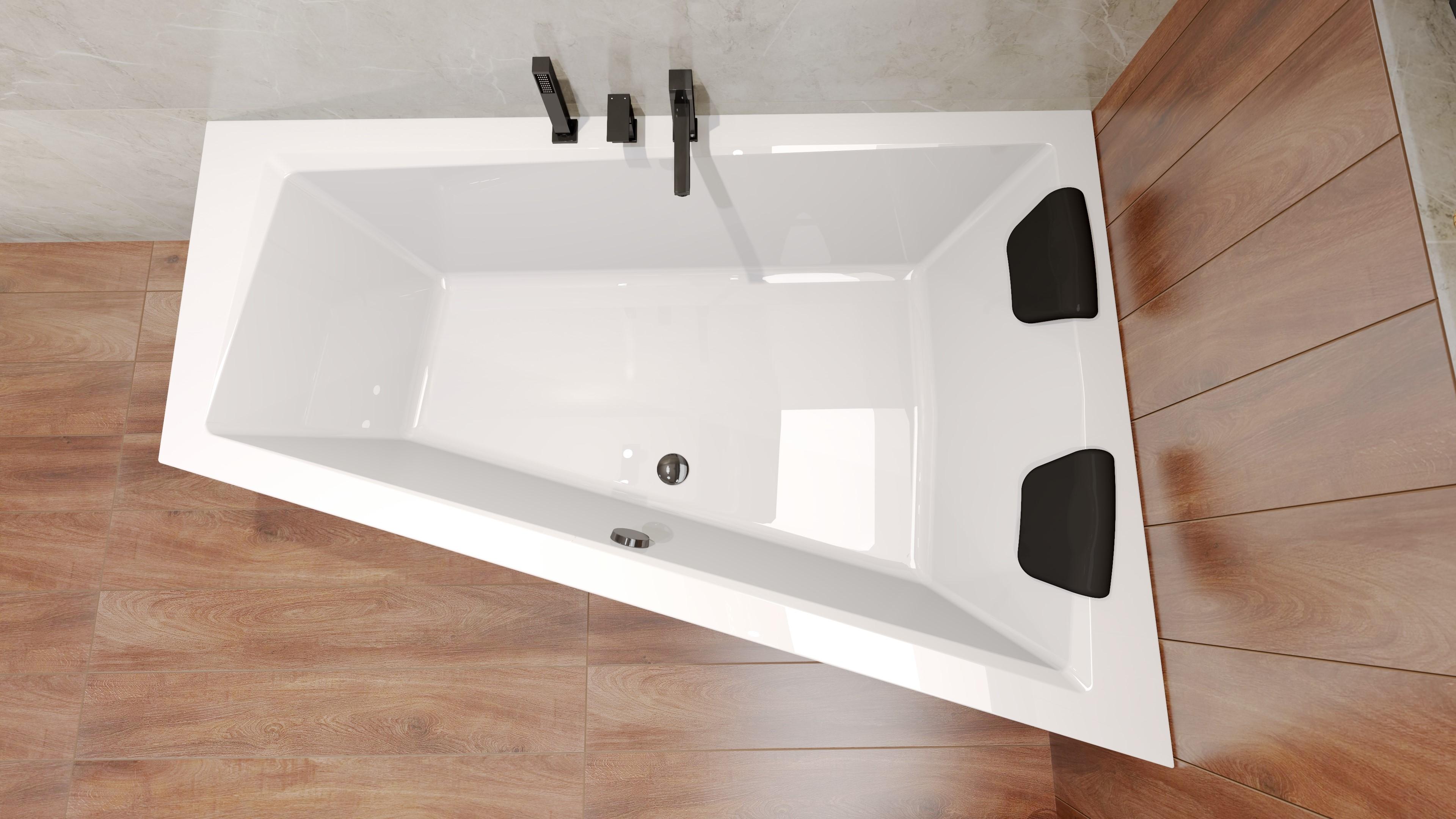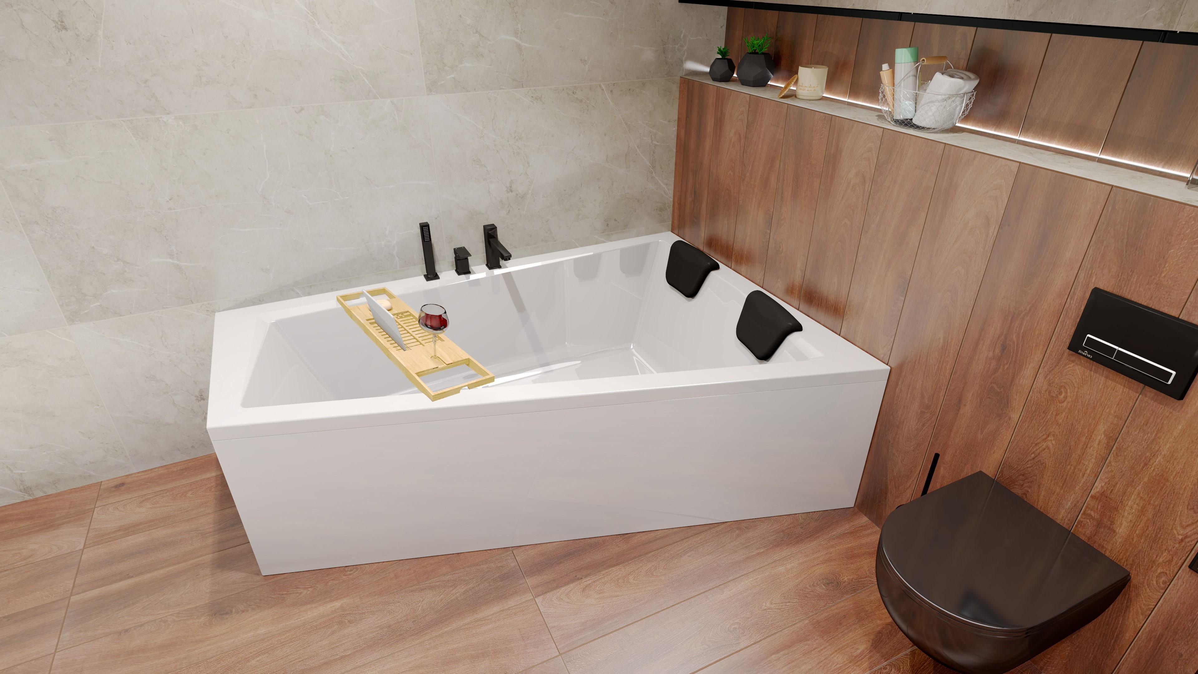 Badewanne Eckwanne INTIMA 160x90 Rechts | Ablauf & Füße GRATIS ! + 2 Kopfstütze + Bambus Badewannenablage