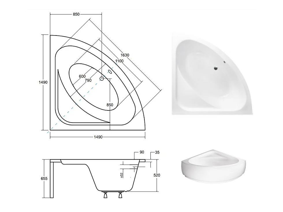 Badewanne Eckwanne INTIMA SLIM 160x90 Links | Ablauf & Füße GRATIS !