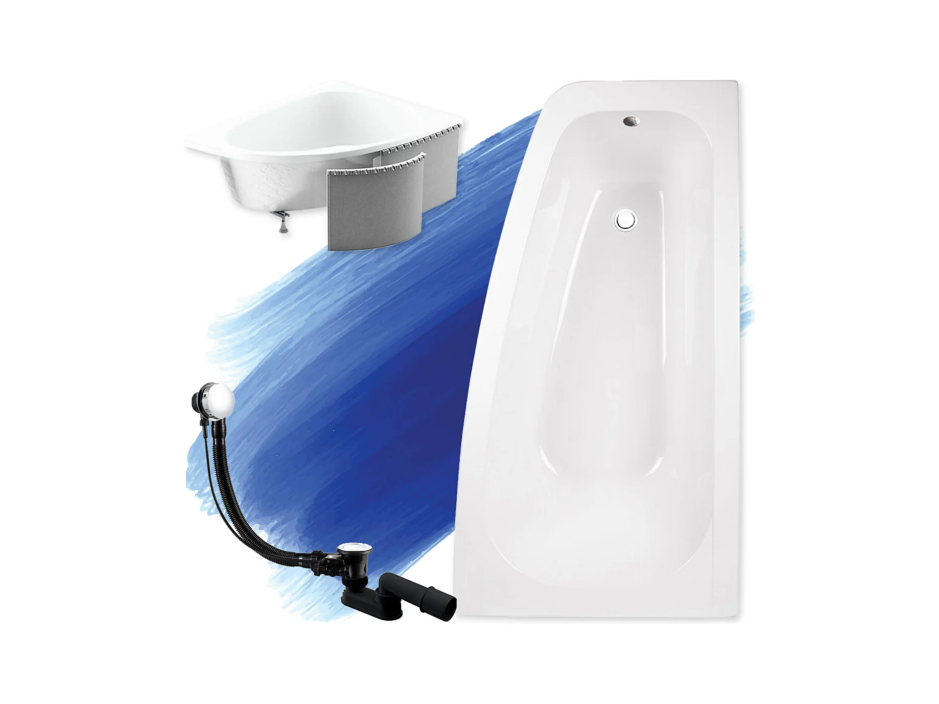 Badewanne Eckwanne MILENA 150x70 Links mit Styroporverkleidung | Ablauf & Füße GRATIS !