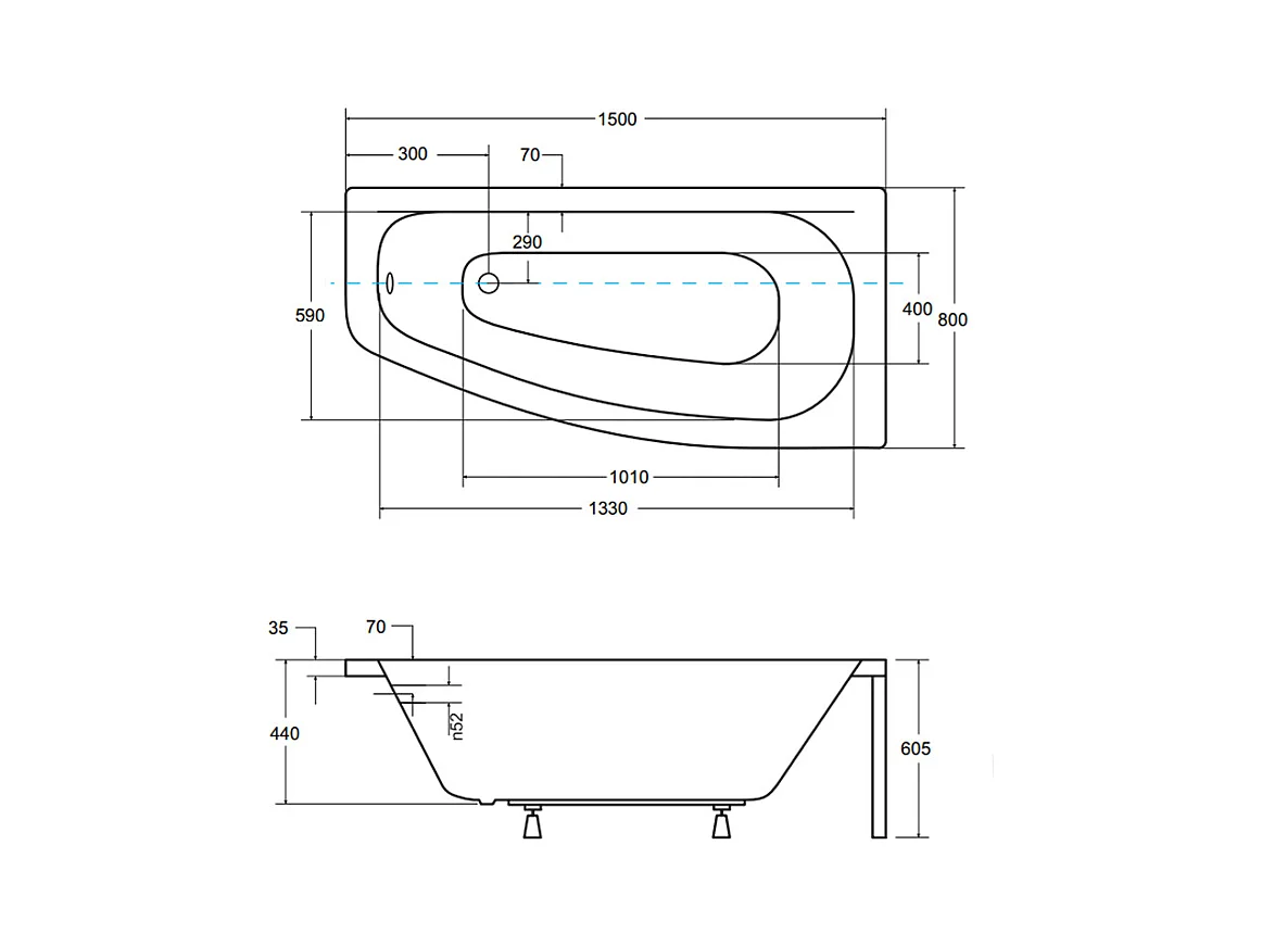 Badewanne Eckwanne PRAKTIKA 150x70 Links | Ablauf & Füße GRATIS !